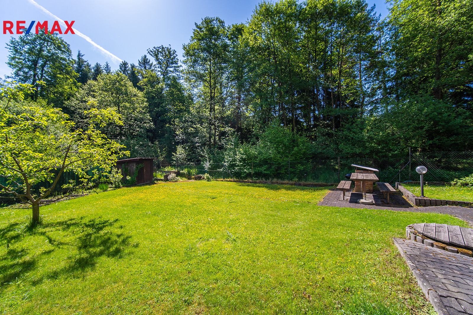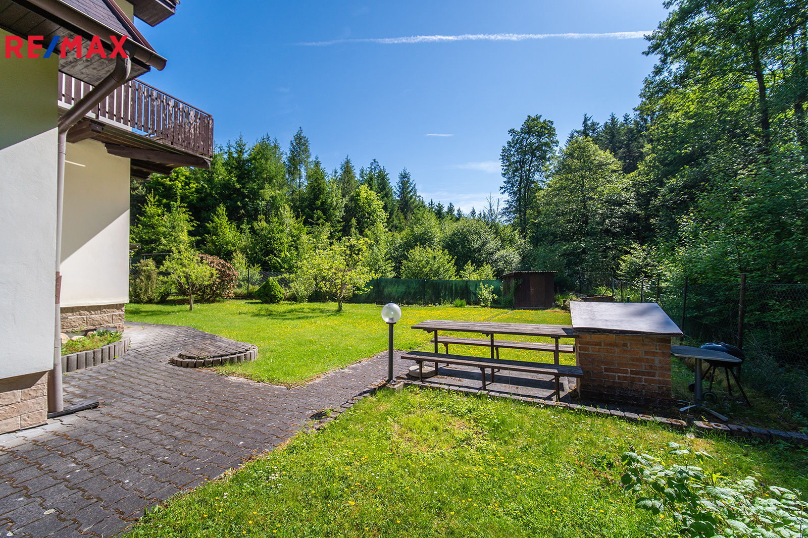 Zdrojem pitné vody je studna a odpadní vody jsou řešeny domovní čističkou odpadních vod. Na zahradě je pěkné posezení u zděného zahradního grilu. Na pozemku se nachází tři prostorné kůlny s vybavením a nářadím pro údržbu domu, trávníku a pro uskladnění sportovních potřeb. Pro nové majitele je připravena velká zásoba dřeva pro krbová kamna.