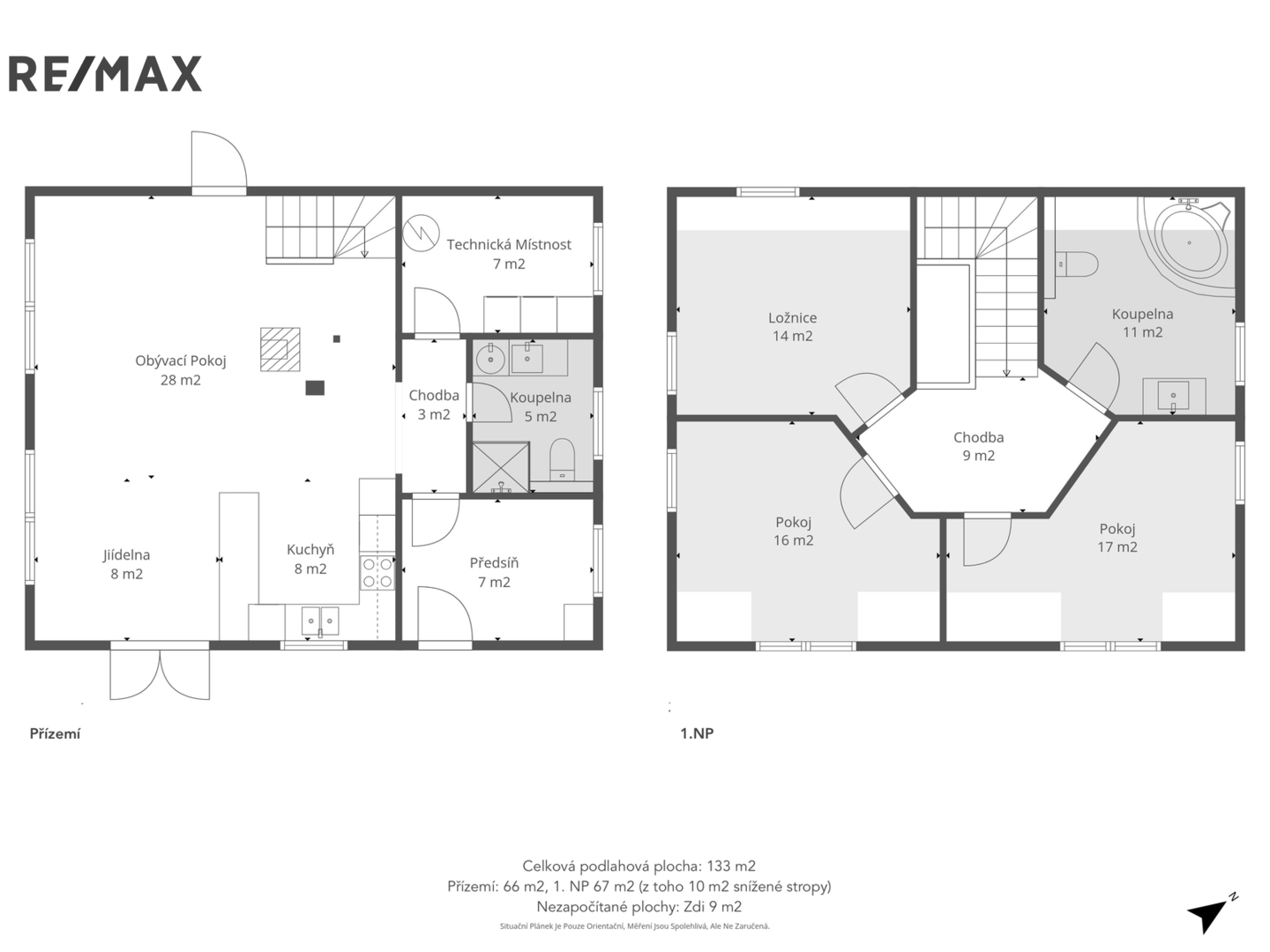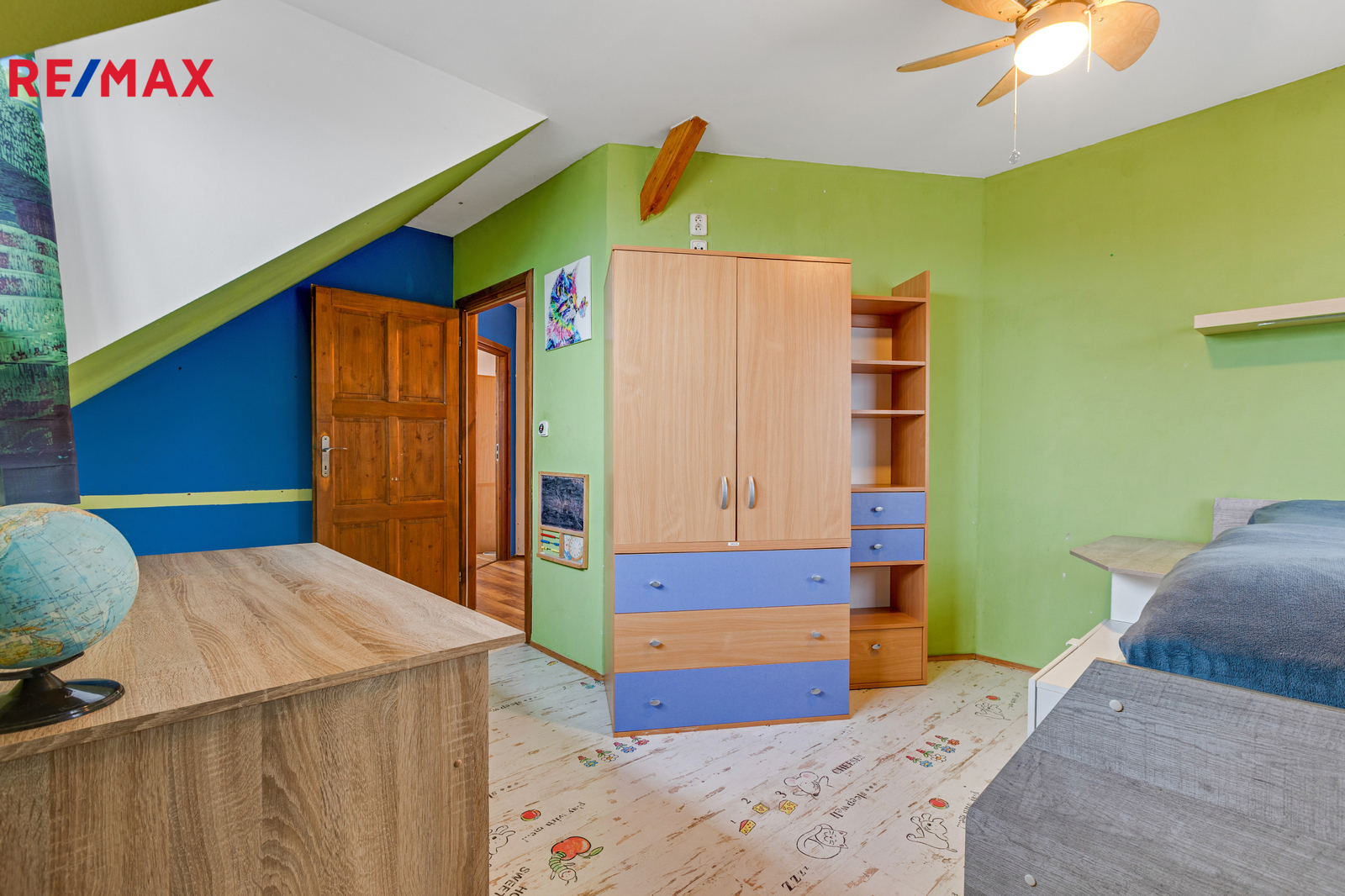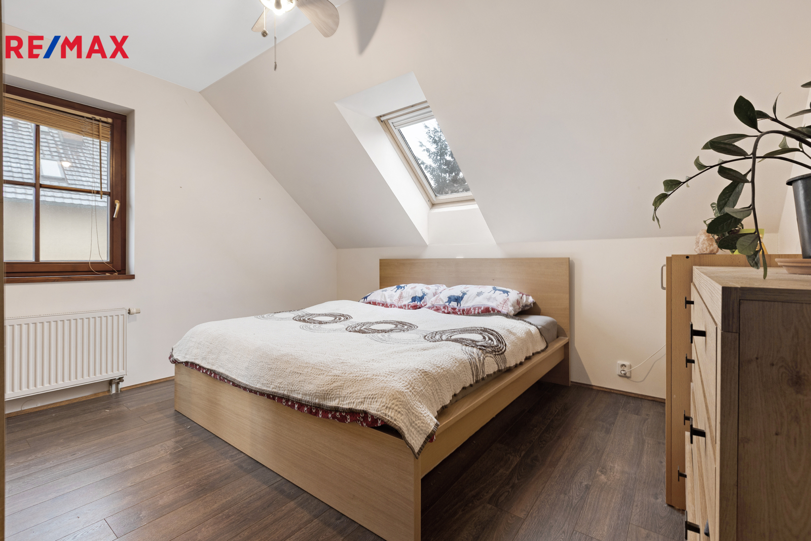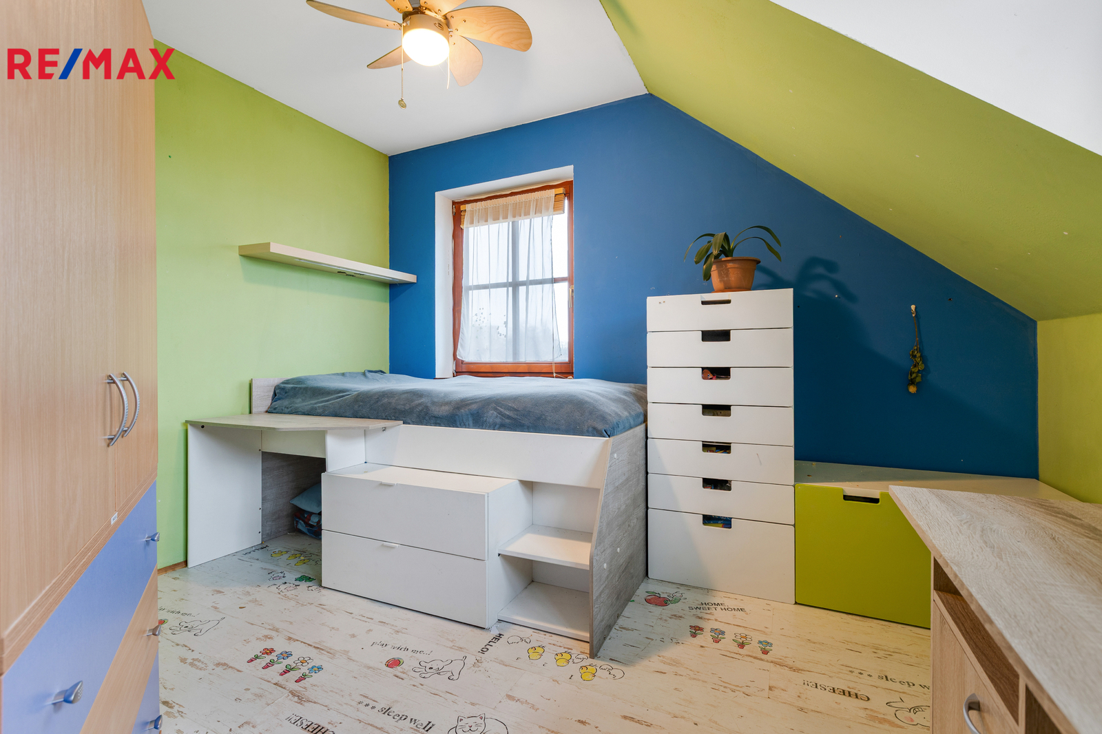 V horním patře se nachází tři samostatné pokoje a druhá koupelna. Patro je řešeno jako klidová část domu, vhodná pro ložnice, dětské pokoje nebo pracovnu.