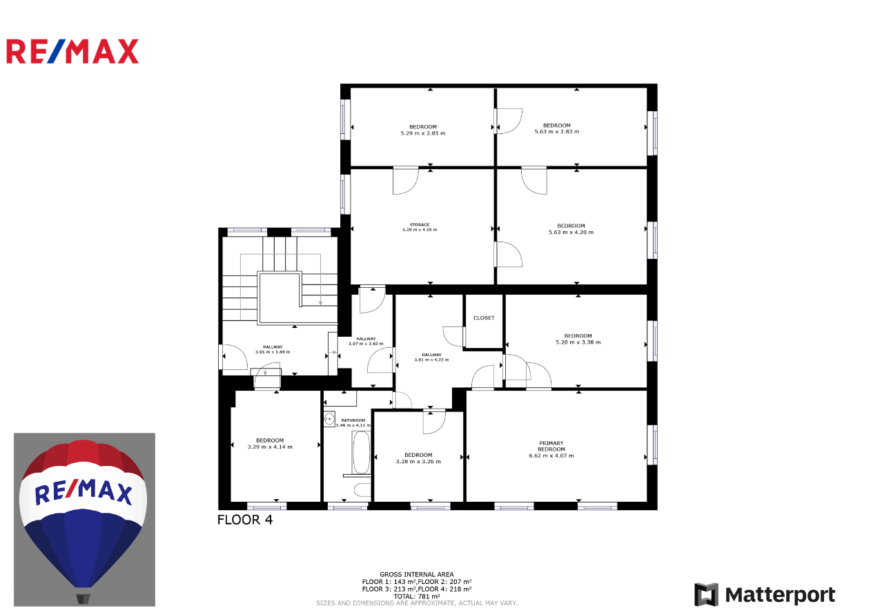 Celková užitná plocha nemovitosti cca 800 m², jedno podzemní a tři nadzemní patra.