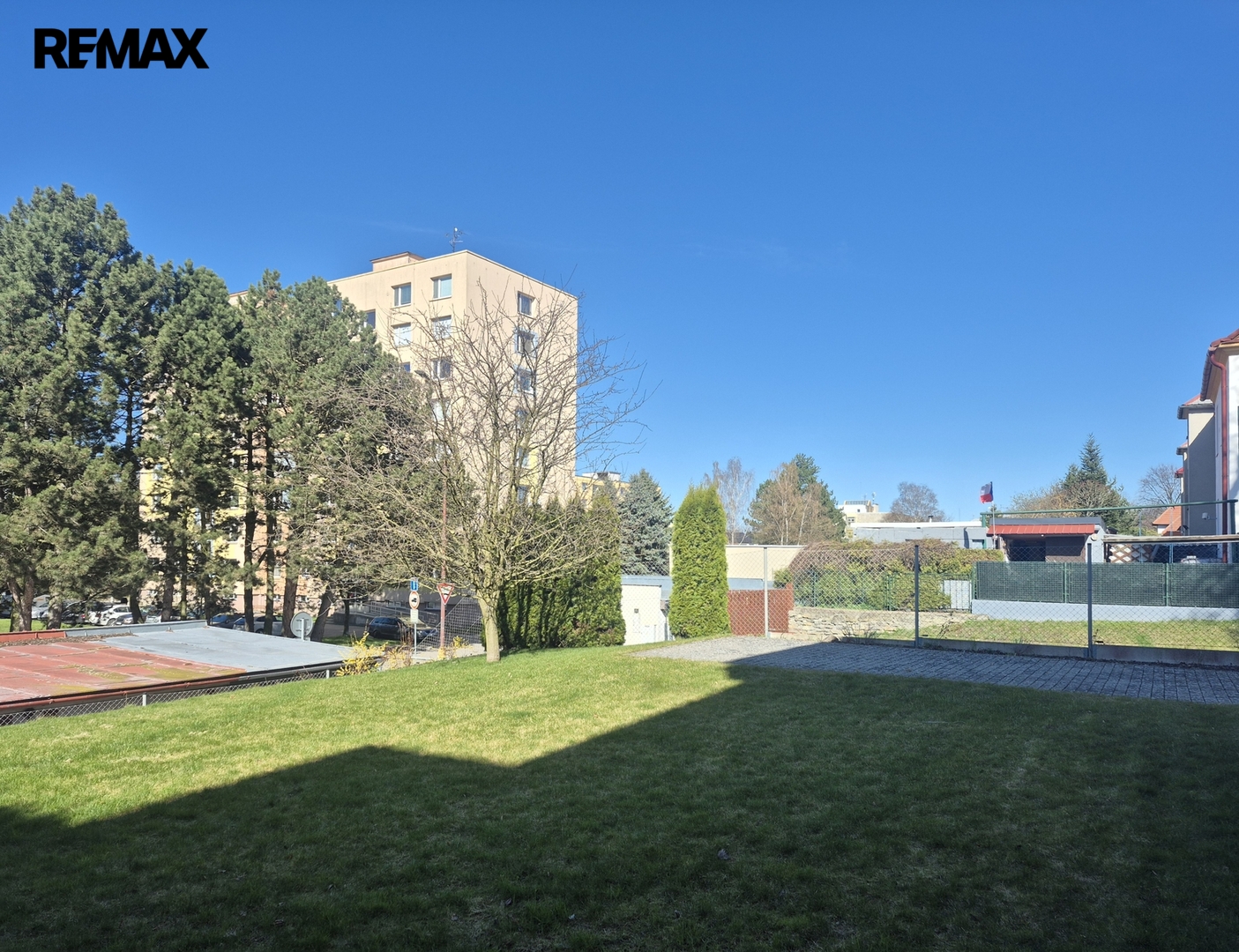Celá nemovitost je oplocená, vjezd na pozemek je bránou na el. pohon, část pozemku je vydlážděna, před domem lze parkovat 2 auta. Vzadu na zahradě je také ještě další část vydlážděná, kde kdysi bývala garáž. Celková plocha pozemků je 512 m2, z toho zahrady mají 324 m2 a zastavěná plocha s ostatní plochou má 188 m2.