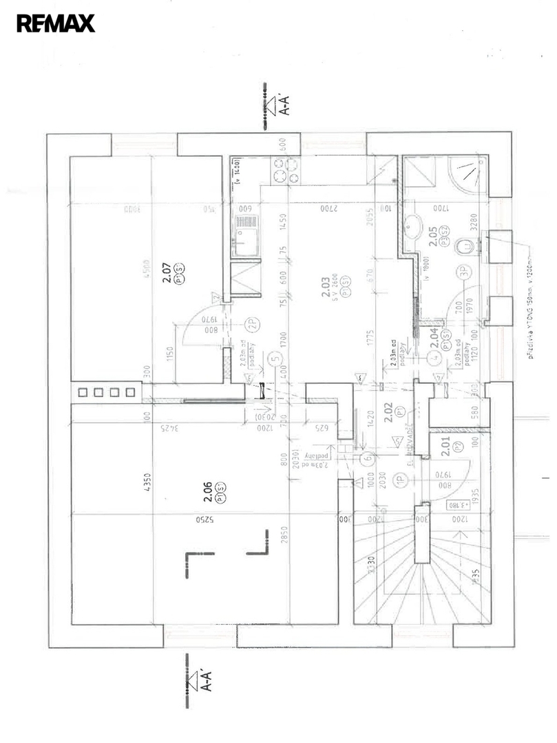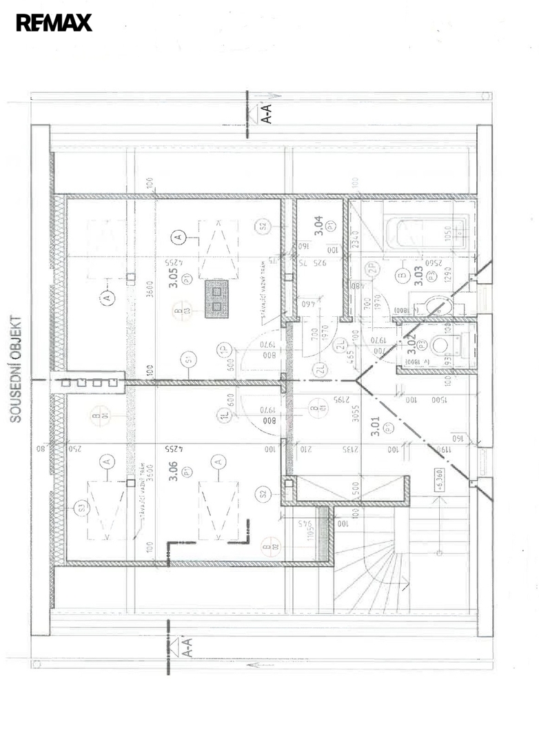 Prostory ve 2. NP a 3. NP (půdní prostory) jsou ve stavu téměř hrubé stavby (bez vnitřních prostorových úprav), ale již s připravenými rozvody na odpad, vodu a topení (vč. podlahového). V těchto prostorách byl plánovaný byt 4+1 s příslušenstvím o velikosti 119,60 m2, který se měl sestávat z následujících prostor: ve 2. NP ze vstupní chodby, kuchyně, šatny, koupelny, obývacího pokoje, pokoje, ve 3. NP z chodby, WC, koupelny, šatny a 2 pokojů. K těmto prostorám je vymezený sklad v suterénu domu o výměře 12,20 m2.