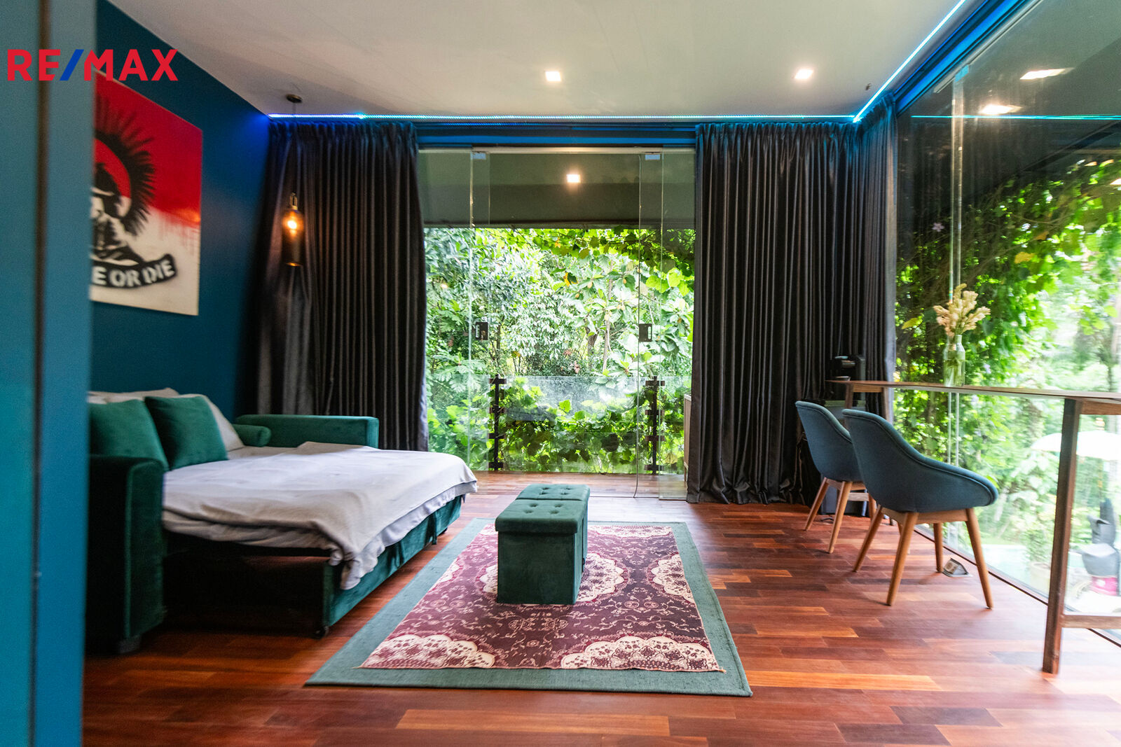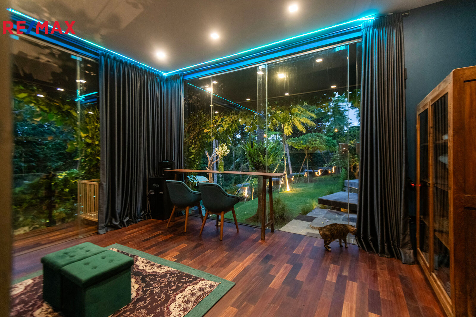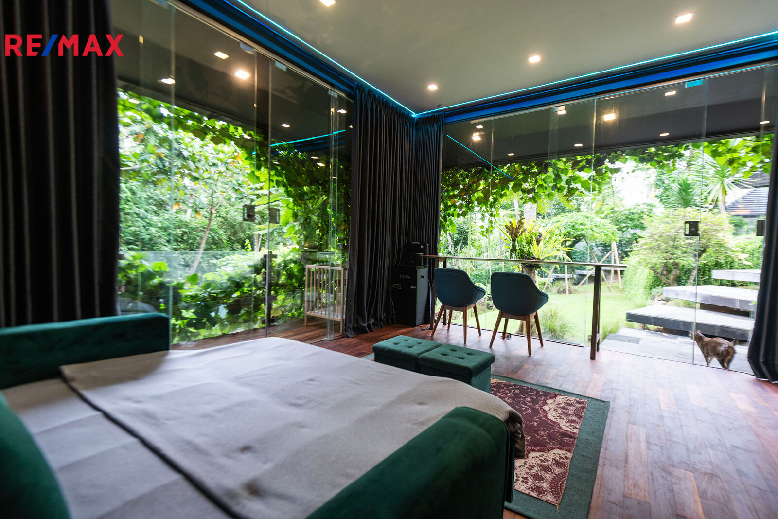 Prostorné interiéry, velkoformátová okna propojující interiér s přírodou, dřevěné podlahy, elegantní kuchyně s výhledem do zahrady, ložnice s přímým vstupem ven a velkolepý obývací prostor – to vše dohromady tvoří neobyčejný domov. Vila disponuje dvěma ložnicemi, ale prostorově působí jako rezidence mnohem větší kategorie.