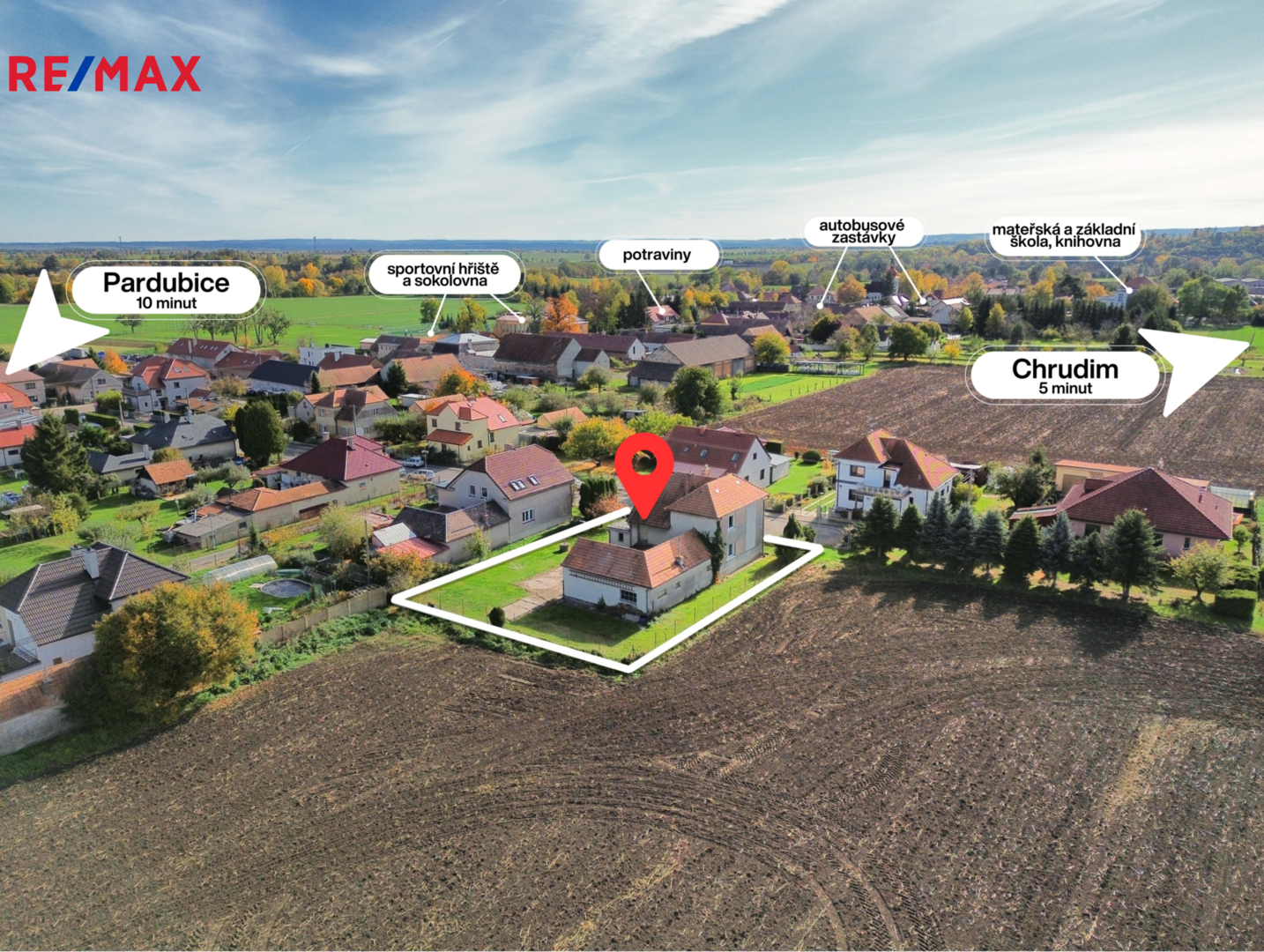 Autobusová zastávka je vzdálena 6 minut chůze, vlaková zastávka 20 minut. Autem se dostanete do Chrudimi za 5 minut, do Pardubic za 10 minut, na dálnici D11 za 20 minut.