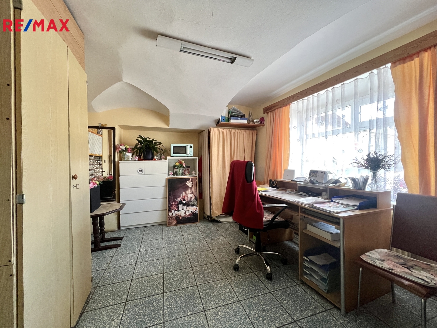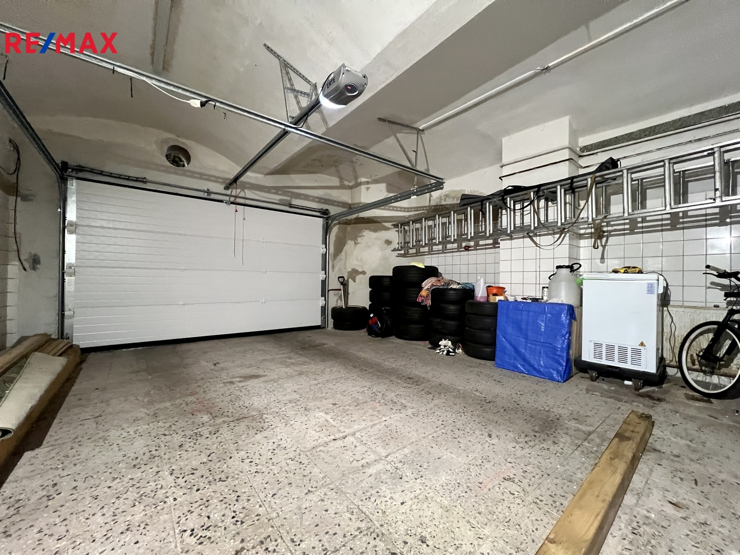 • Přízemí (cca 200 m²) nabízí prodejnu, kancelář, garáž s elektrickými vraty, kotelnu, WC, sklady a prostor pro případné vybudování koupelny – ideální pro podnikání nebo samostatnou bytovou jednotku.