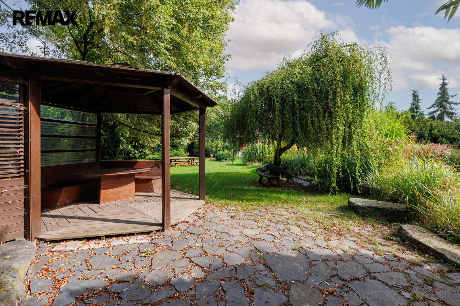 Zahrada je vzrostlá, udržovaná a od počátku promyšleně budovaná s důrazem na soukromí. Součástí je přírodní biotop, vzrostlé stromy i ovocná zahrada a okrasné kameny. Nechybí zahradní altán napojený na elektřinu, terasy a přímý vstup do wellness.