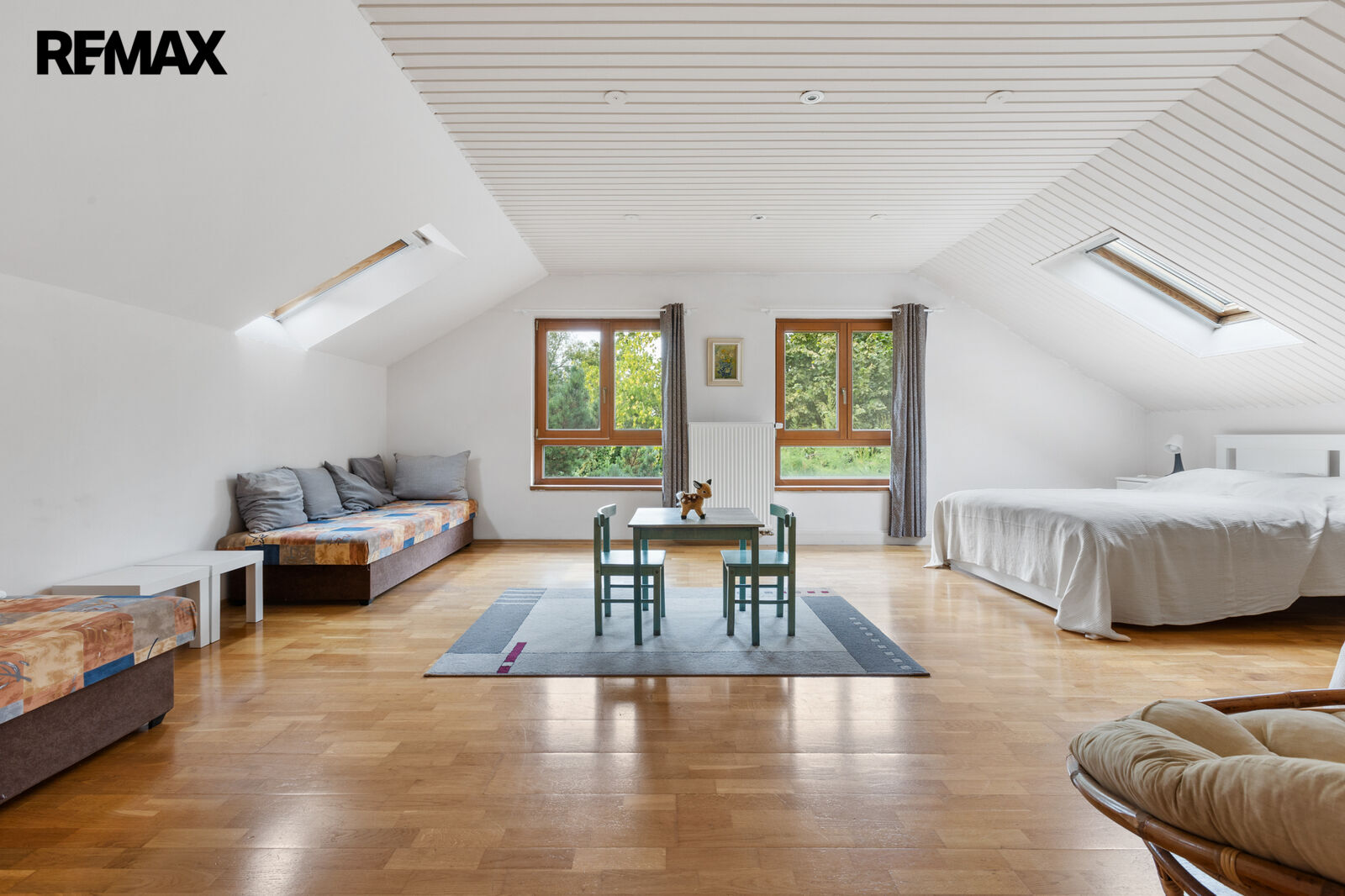 Jedná se o dům, který nabízí víc než jen dostatek místa. Díky promyšlenému návrhu a kvalitnímu provedení a dlouhodobé údržbě je v dobrém stavu. Spojuje pohodlí rodinného bydlení s prvky výrazně zvyšují komfort – vnitřní bazén, zahrada s biotopem, prostorné zázemí i naprosté soukromí. To vše v klidné obci s rychlým spojením do Prahy.