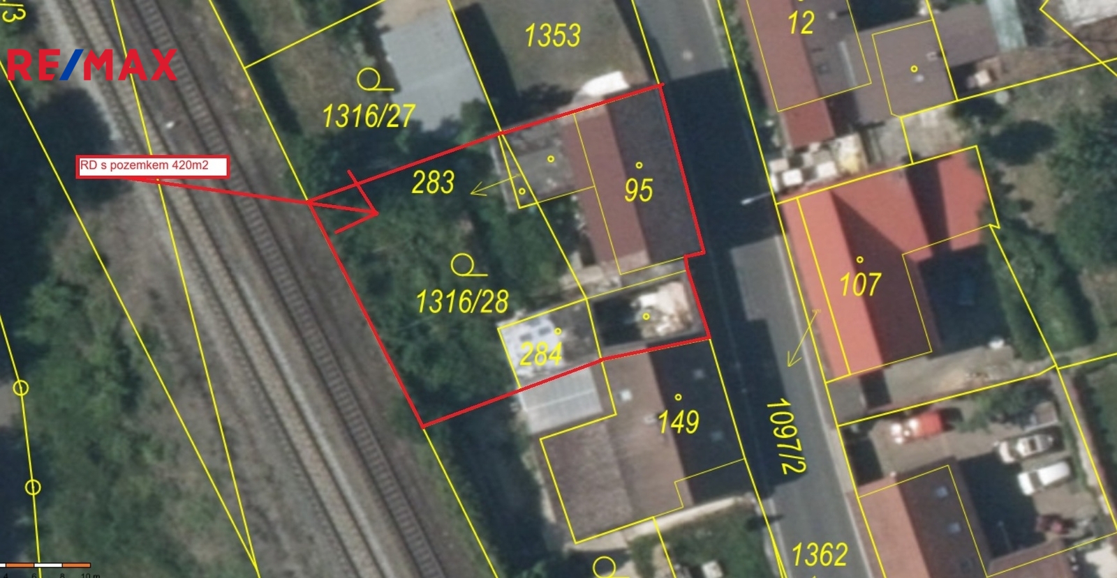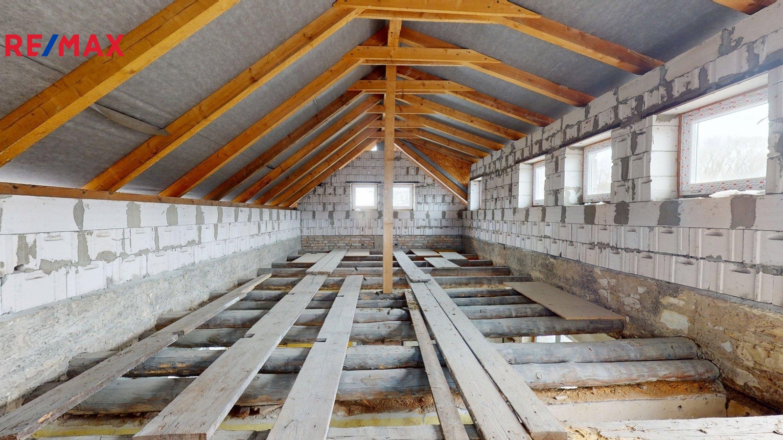 K domu náleží členitá zahrada o velikosti 222 m2 a garáž se špatnou střechou. Celý dům vč. garáže je podsklepený, napojený na obecní vodovod, kanalizaci, plynovod, elektro přípojka nová.
