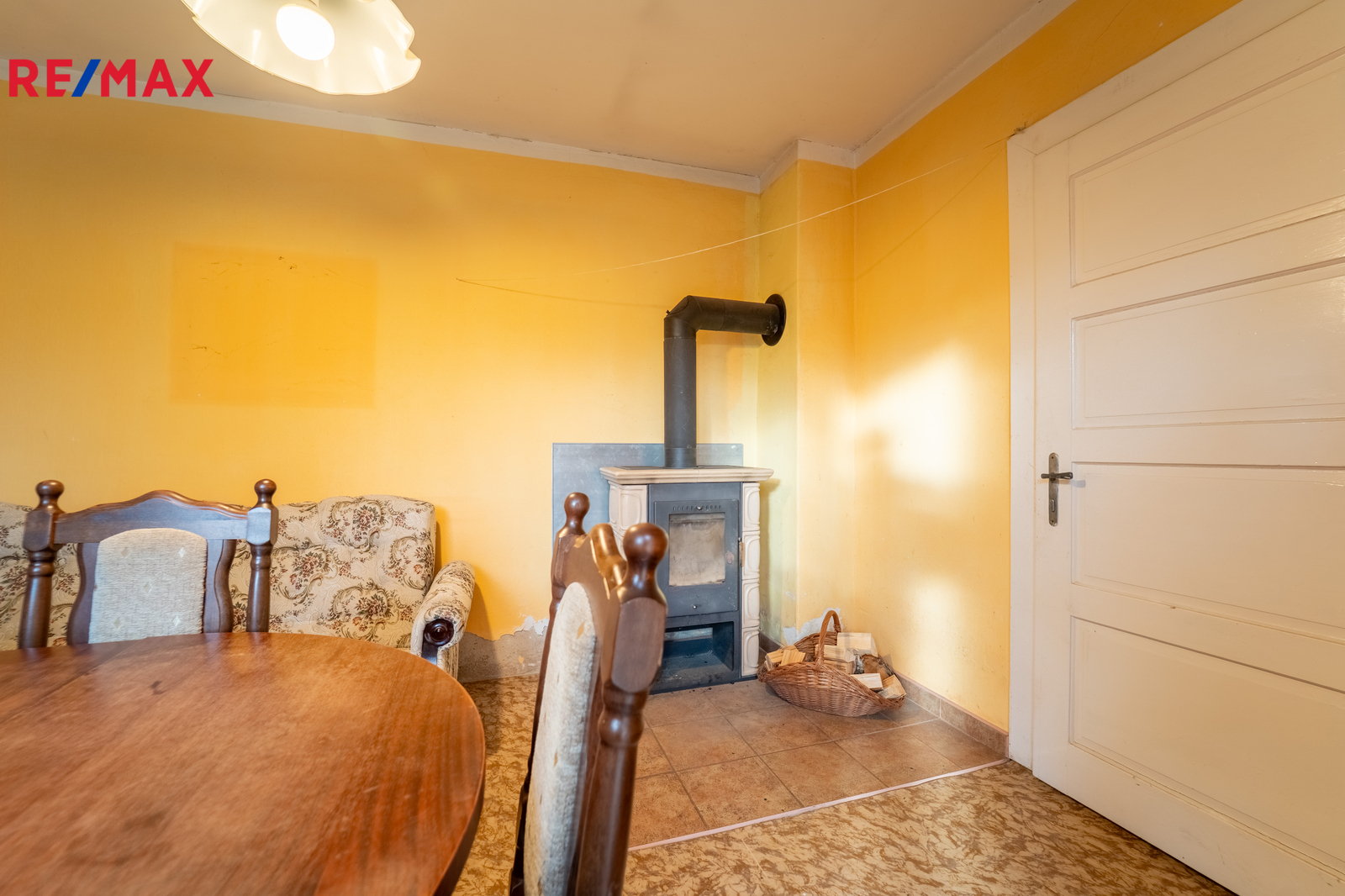 Dispozice domu je praktická: přízemí - vstupní předsíň, chodba, tři obytné místnosti, kuchyňka, koupelna s toaletou a technická místnost. Po dřevěném schodišti se dostanete na půdu do prvního patra, kde se nachází další obytná místnost. Půda je vhodná k rekonstrukci a nabízí možnost rozšíření obytného prostoru, dle vlastních představ (dvě místnosti a sociální zázemí). Vytápění zajišťuje elektrokotel s expanzní nádobou, voda je ohřívána rovněž přes elektrokotel. V domě jsou dva komíny, z nichž jeden je využíván pro krbová kamna na dřevo, která dodávají domovu příjemnou atmosféru a výhřevnost. V ostatních místnostech jsou instalovány radiátory, které jsou vytápěny elektrokotlem. Podlahy tvoří dlažba a koberce.