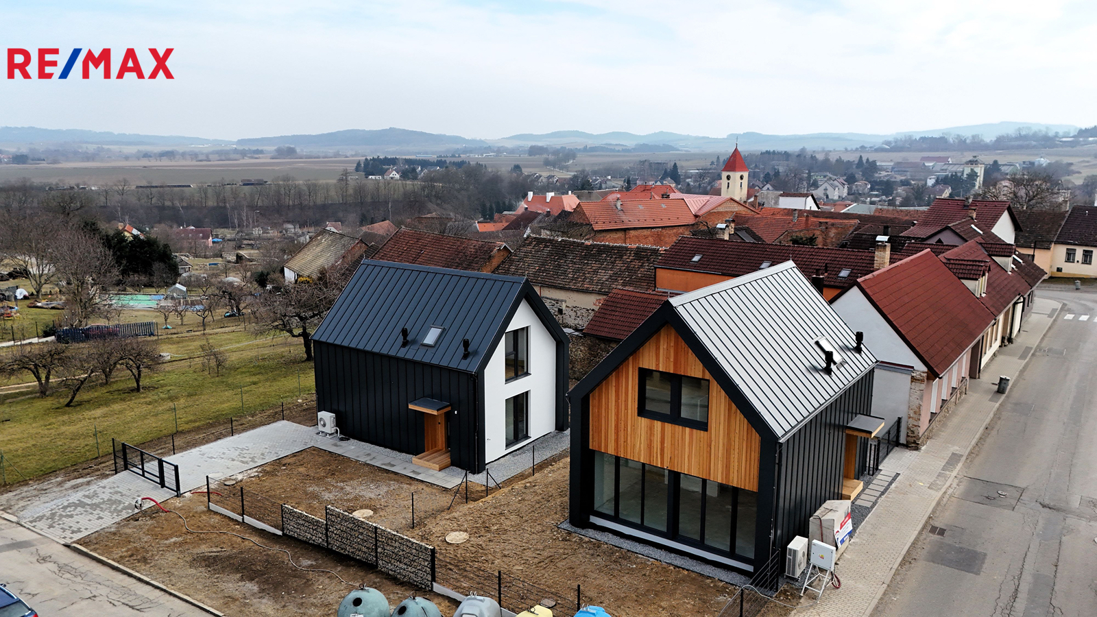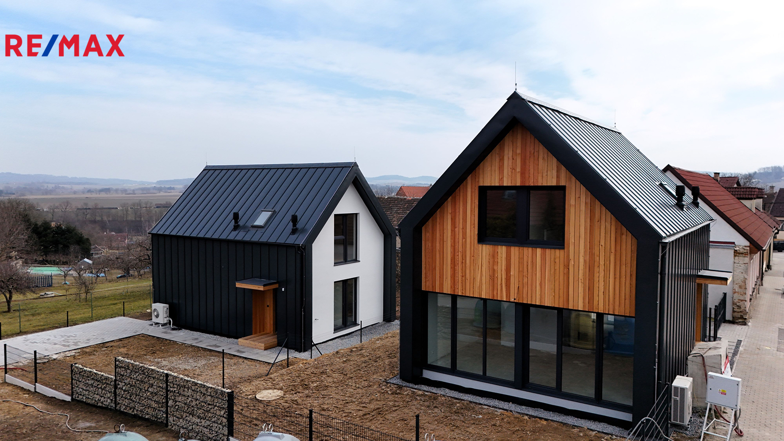 Na fotografiích jsou již dostavěné domy v jiné lokalitě.