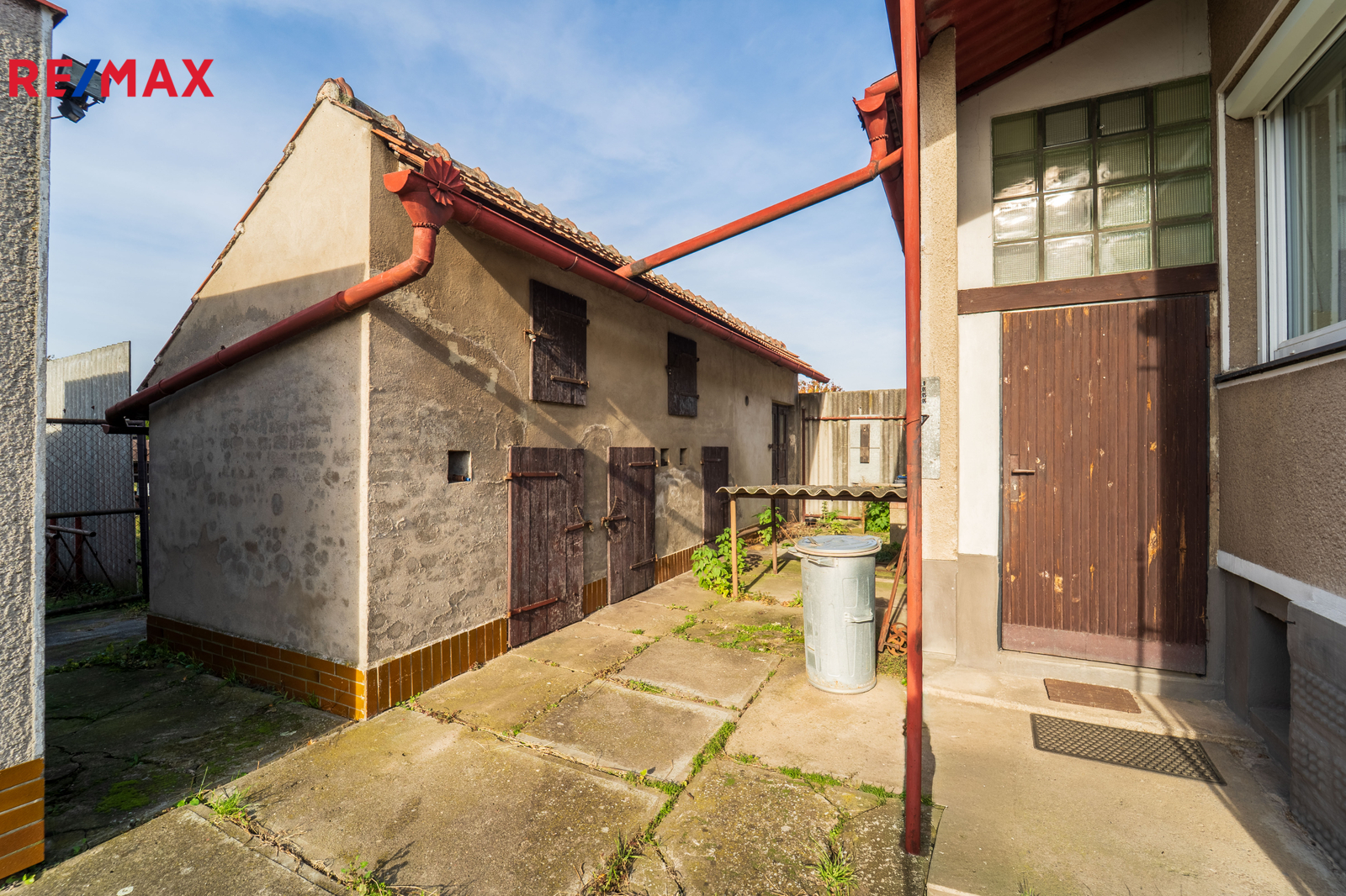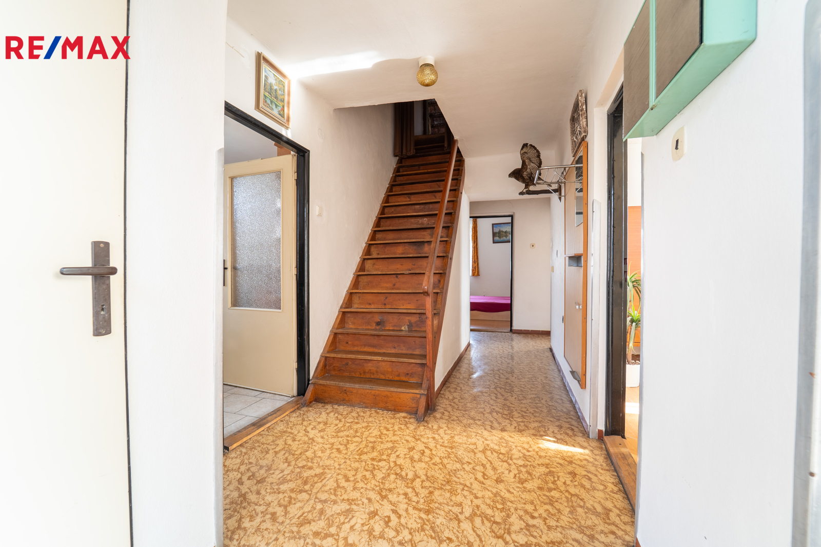 Dovoluji si Vám nabídnout prodej rodinného domu s rozlehlou zahradou, v obci Všechlapy u Nymburka. Na rovinatém pozemku o celkové rozloze 1250 m2, s vjezdem z místní komunikace, se nachází rodinný dům s garáží, kůlnami a zahradou. Samostatně stojící dům je převážně z cihlového zdiva a má sedlovou střechu s pálenými taškami. Dům je v původním, avšak udržovaném stavu. Došlo pouze k výměně oken za plastová, která jsou doplněna žaluziemi a venkovními roletami. Podlahy v domě tvoří dlažba a beton s PVC. V přízemí domu se nachází předsíň, samostatné WC, koupelna s vanou, kuchyně s komorou a 3 pokoje. Z chodby vede dřevěné schodiště do podkroví, kde lze vybudovat další obytné místnosti. Dům je téměř celý podsklepen. K vytápění slouží elektrické přímotopy a kamna na tuhá paliva ve dvou pokojích. Ohřev vody zajišťuje elektrický bojler. Parcela je obdélníkového tvaru s dostatkem místa pro vybudování bazénu, i pěstování zeleniny a ovoce. Nemovitost je napojena na veřejný vodovod a kanalizaci. Na pozemku je též k dispozici kopaná studna. Nemovitost se nachází u hlavní frekventované ulice v centru obce.