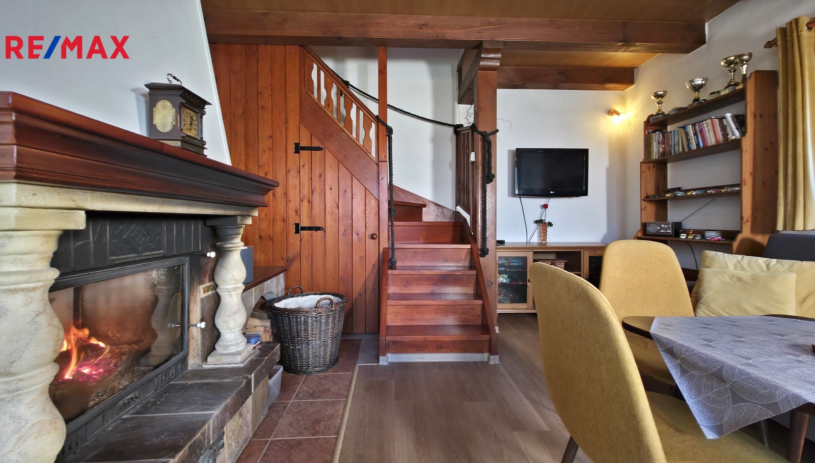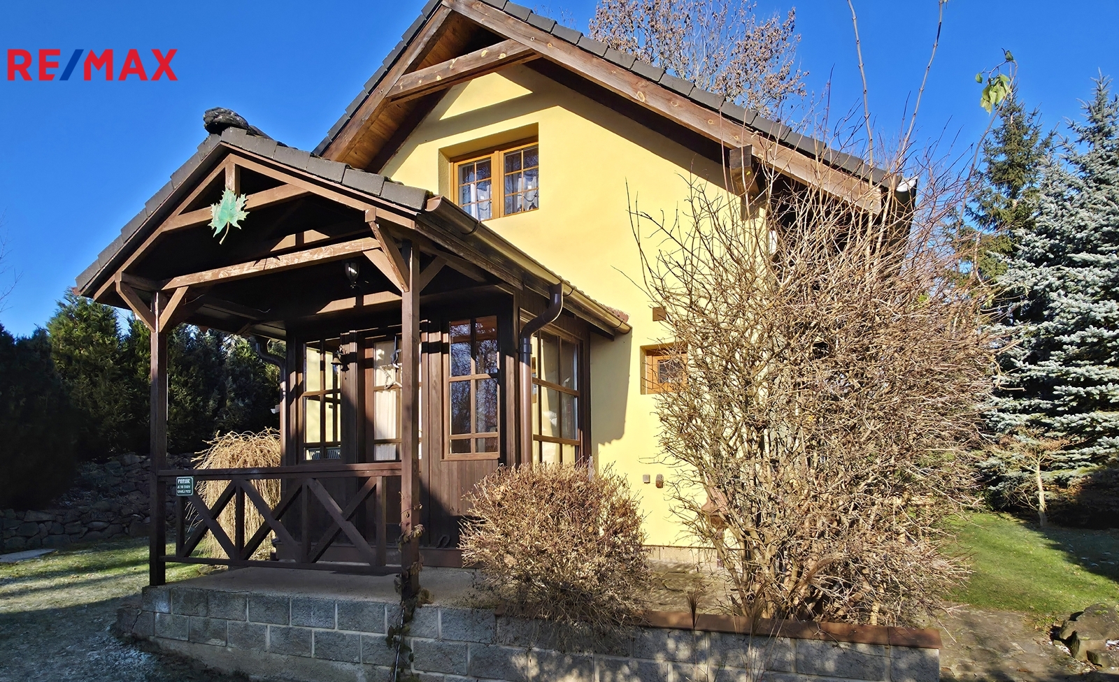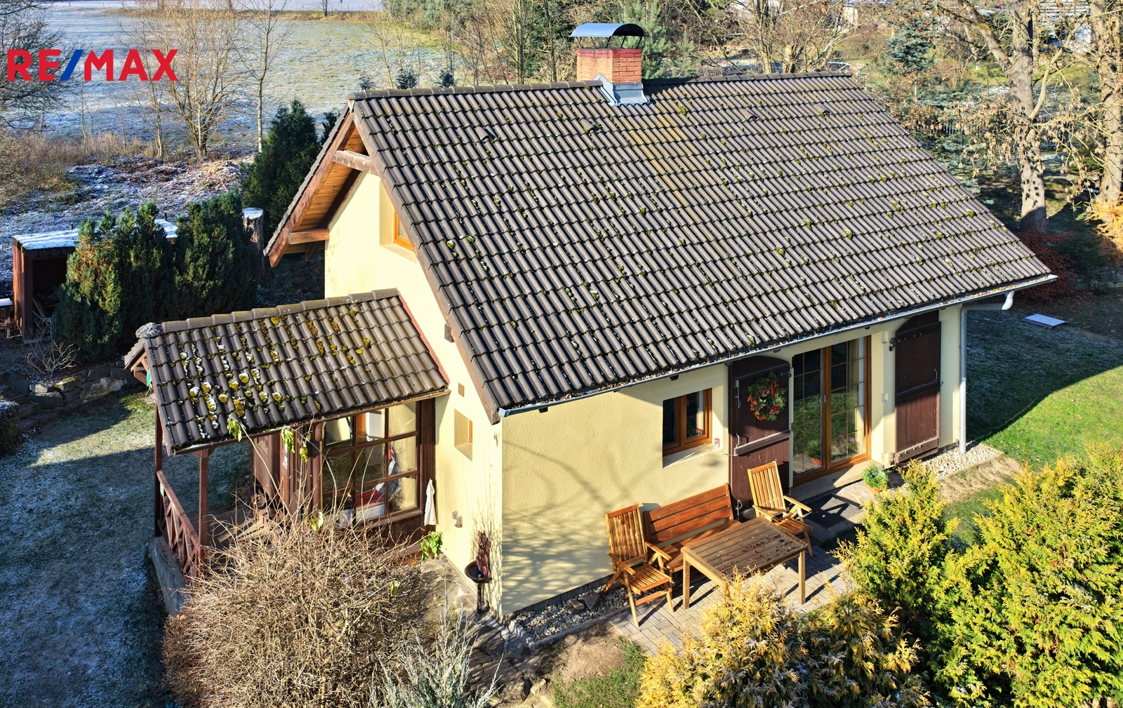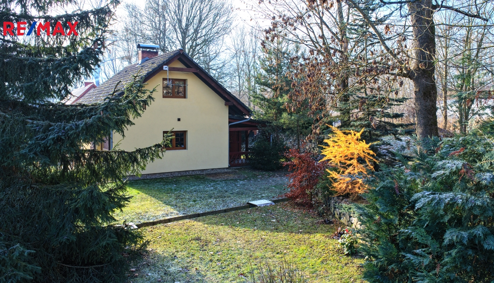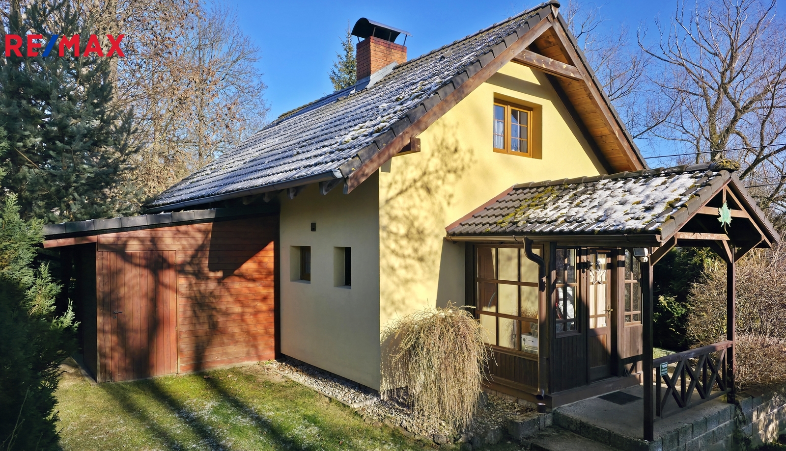 Dům byl kolaudován v roce 2004 a má zastavěnou plochu 57m2, užitnou cca 60m2. Dispozice je tvořená vstupní verandou, chodbou, ze které je vstup do spíže, technické místnosti, samostatné toalety a koupelny. Ta je se sprchovým koutem a přípojkou na pračku. Dále se zde nachází vstup do hlavního obytného prostoru, který je tvořen kuchyní s kuchyňkou linkou se spotřebiči, nachází se zde i menší, na míru dělaný skládací jídelní stůl. Kuchyň, koupelna a podlahy v přízemí jsou nově zrekonstruované. Na kuchyň navazuje obývací pokoj, ten je s krbem a francouzským oknem, ze kterého je vstup na slunnou venkovní terasu. Obytné podkroví je přístupné po dřevěném schodišti a nacházejí se zde dvě samostatné ložnice. Vytápění je zajištěné krbem v kombinaci s elektrickými přímotopy, odpad je svedený do jímky a voda je čerpaná z vlastní studny. Velice udržovaný pozemek kolem domu má celkovou plochu 1042m2 a je koncipován jako okrasná, odpočinková zahrada. Absolutní soukromí zajišťuje vzrostlá a udržovaná zeleň. Na pozemku se nachází dřevěné stavby, které slouží ke skladování věcí, krytá pergola, venkovní krb a studna. Jedná se o velice pěkný domek ve výborném technickém stavu, je vhodný jak k rekreaci, tak i trvalému bydlení. Dojezdová vzdálenost do České Lípy je 15km.