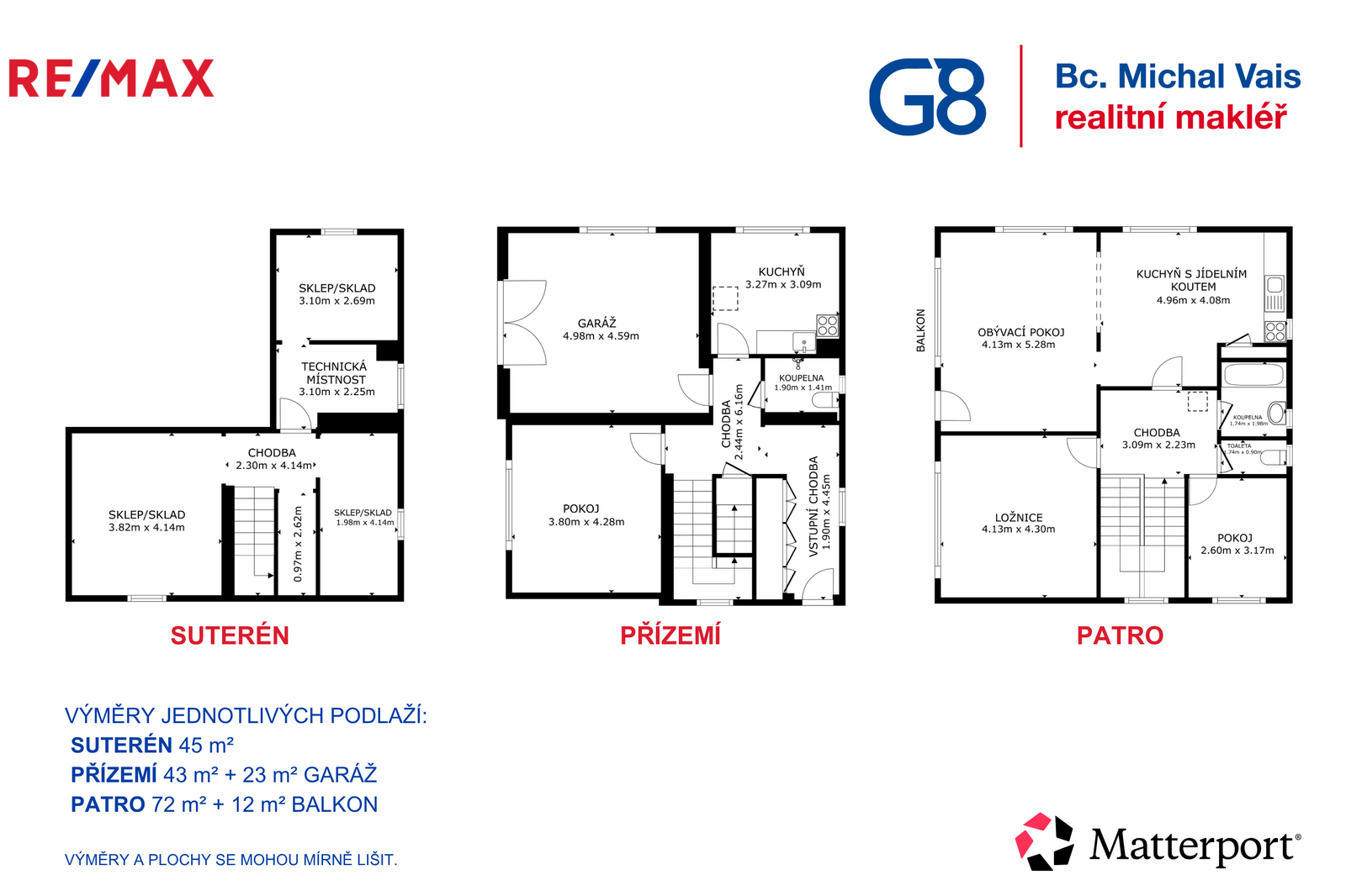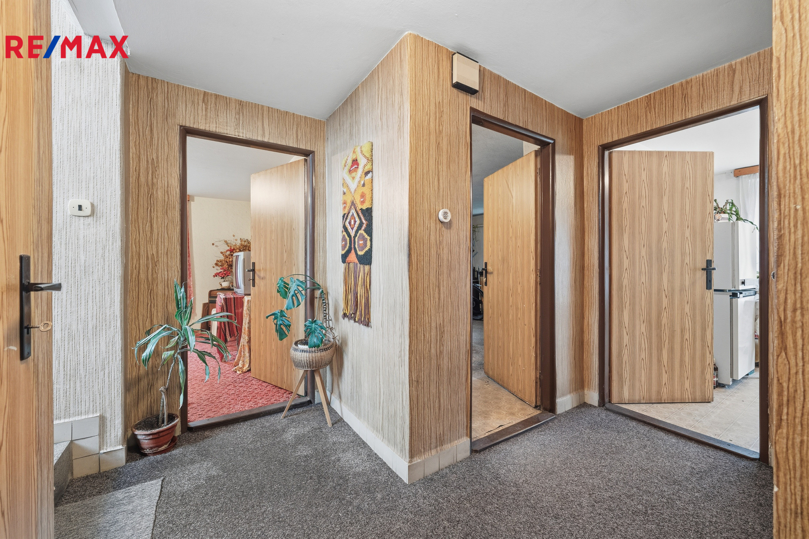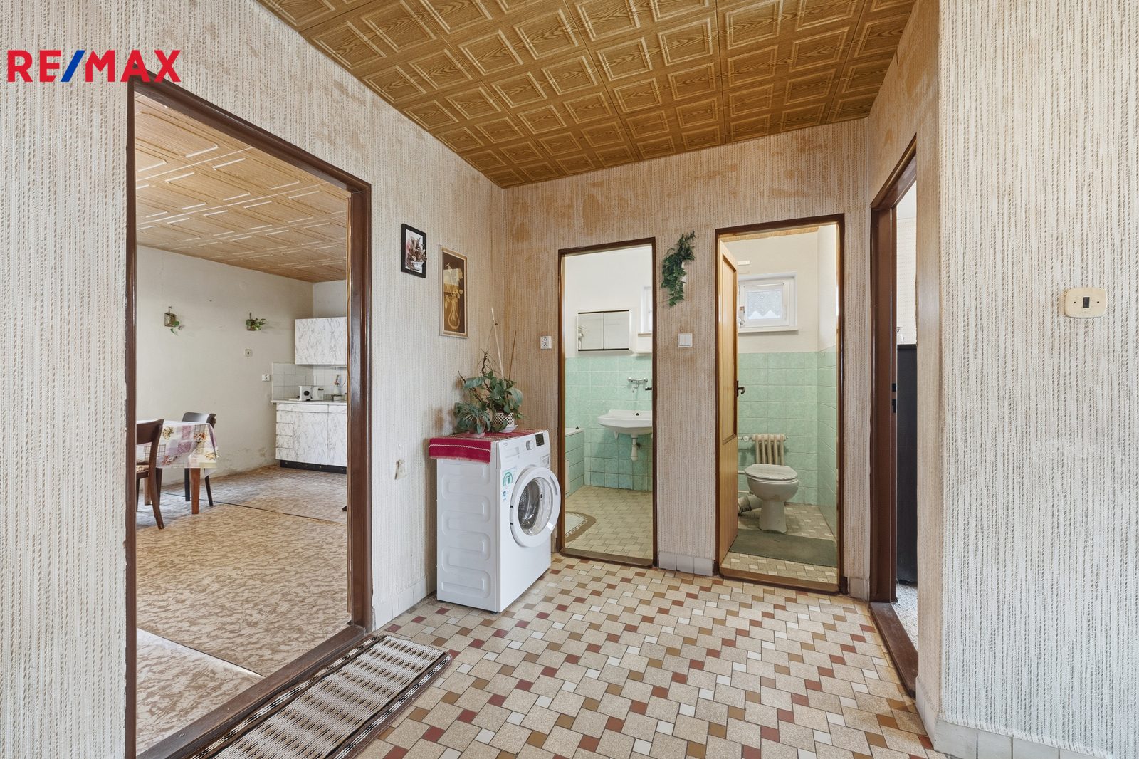 Dispozice domu umožňuje i případné dvougenerační využití – v přízemí najdete prostorný vstup, kuchyň, pokoj, koupelnu a vstup do garáže. V patře se nachází kuchyň s jídelním koutem, obývací pokoj, dva další pokoje a prostorný balkon. Suterén slouží jako technické a skladovací zázemí. Dům je v původním, avšak udržovaném stavu a je připraven k rekonstrukci – ať už sníte o moderním rodinném zázemí, nebo o útulném venkovském stylu.