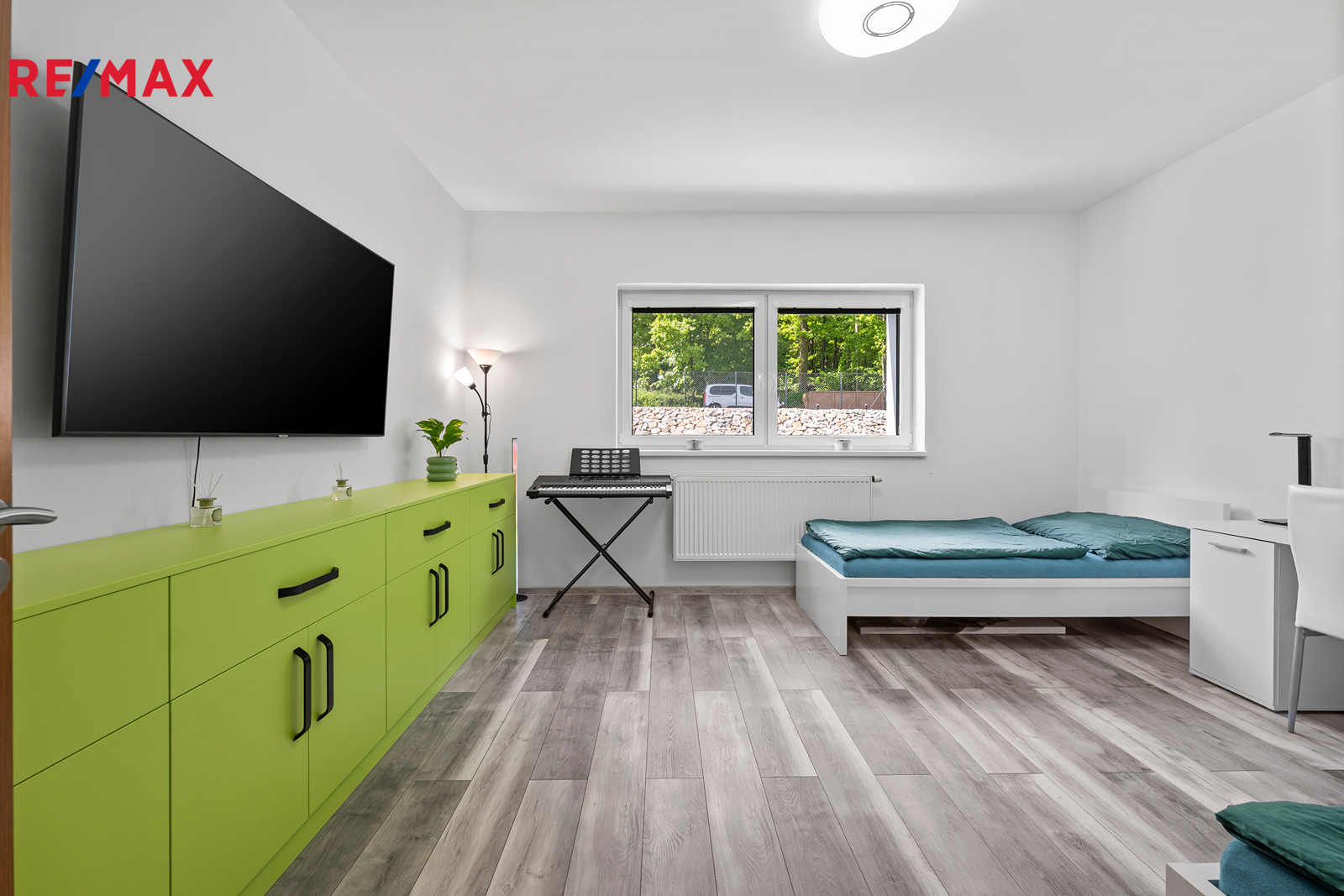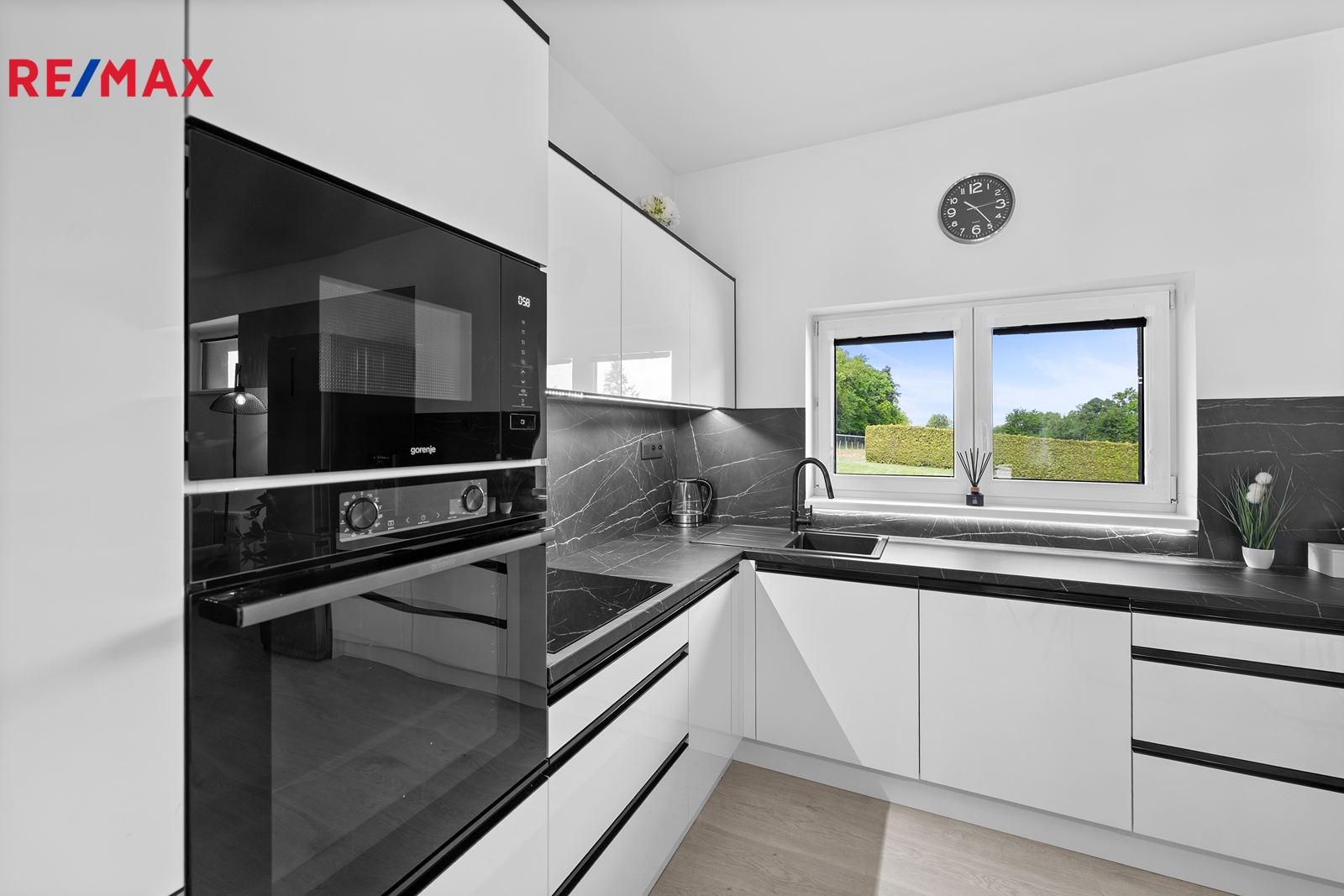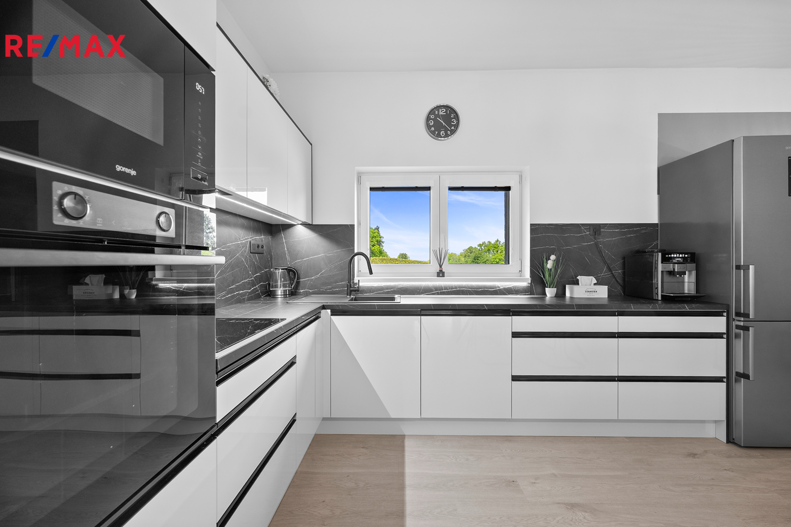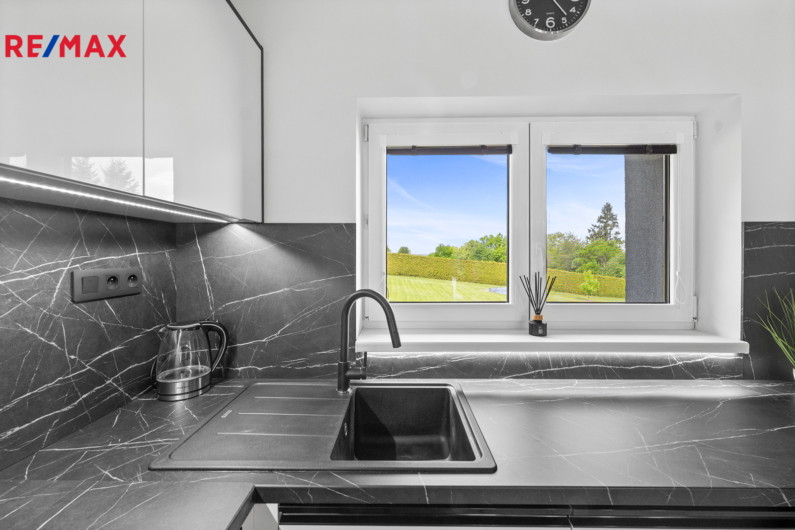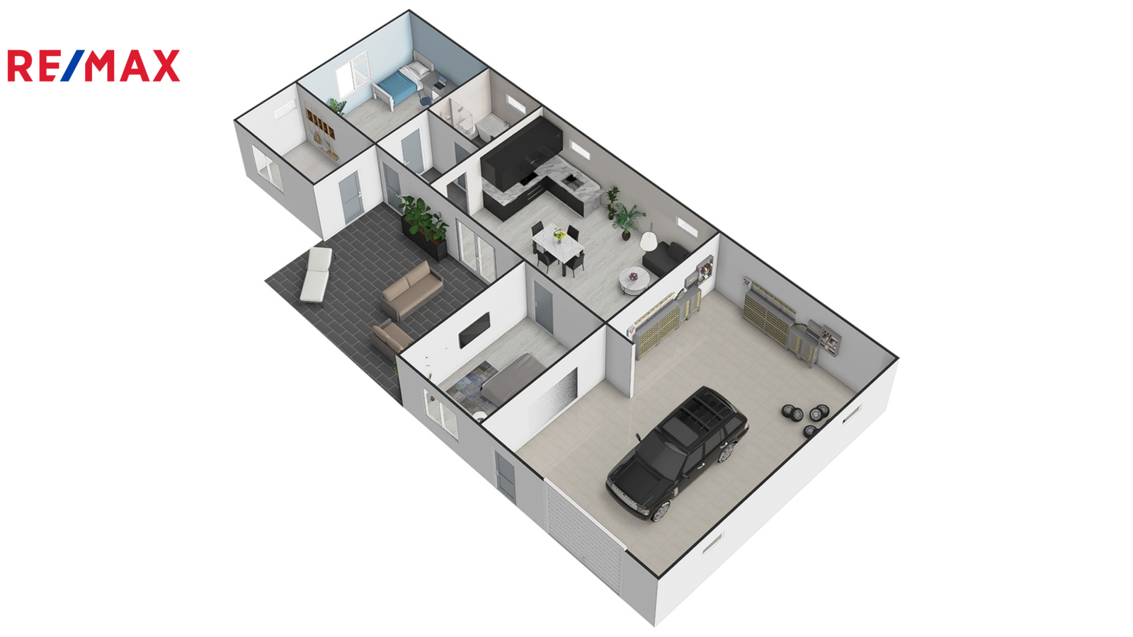 Dům se prodává kompletně vybavený, včetně na míru vyrobeného nábytku, kuchyňské linky se spotřebiči a elektroniky – například televizí v každé místnosti. Prakticky je rozdělen na obytnou část a dílnu, každá s vlastní elektroinstalací. V dílně se nachází zvedák pro auta a elektrická brána. K dispozici je i menší sklep.