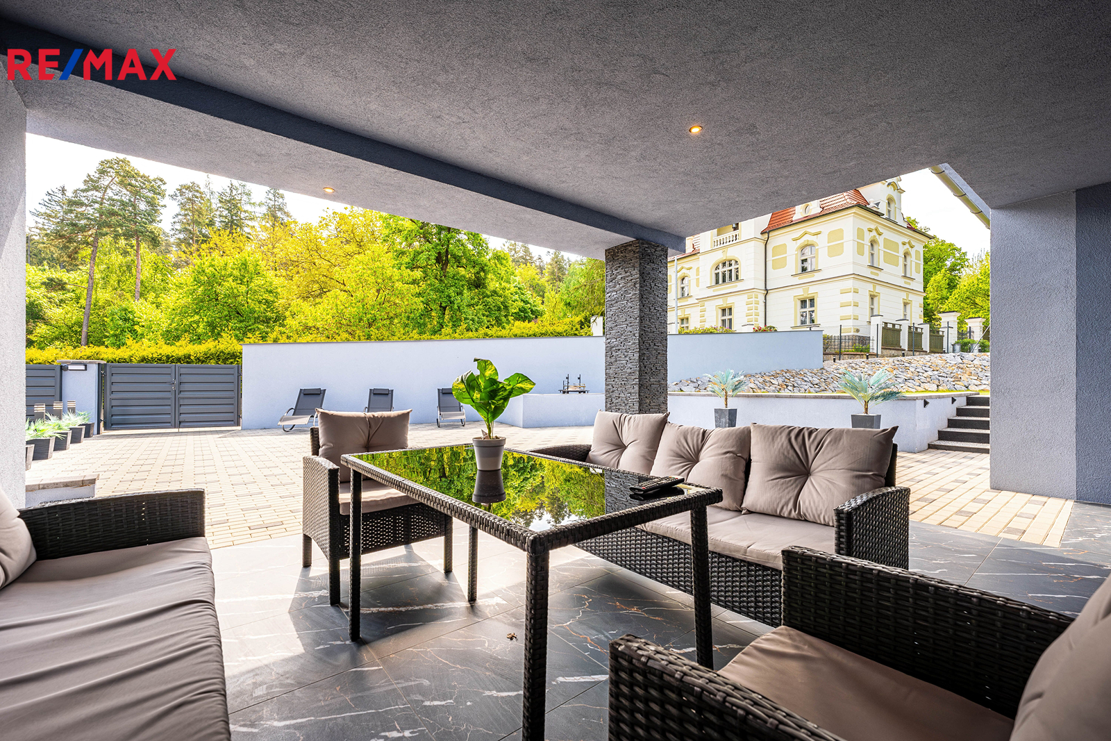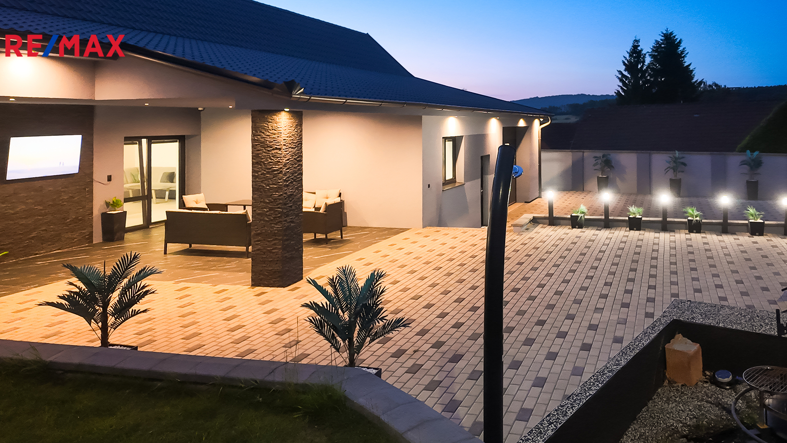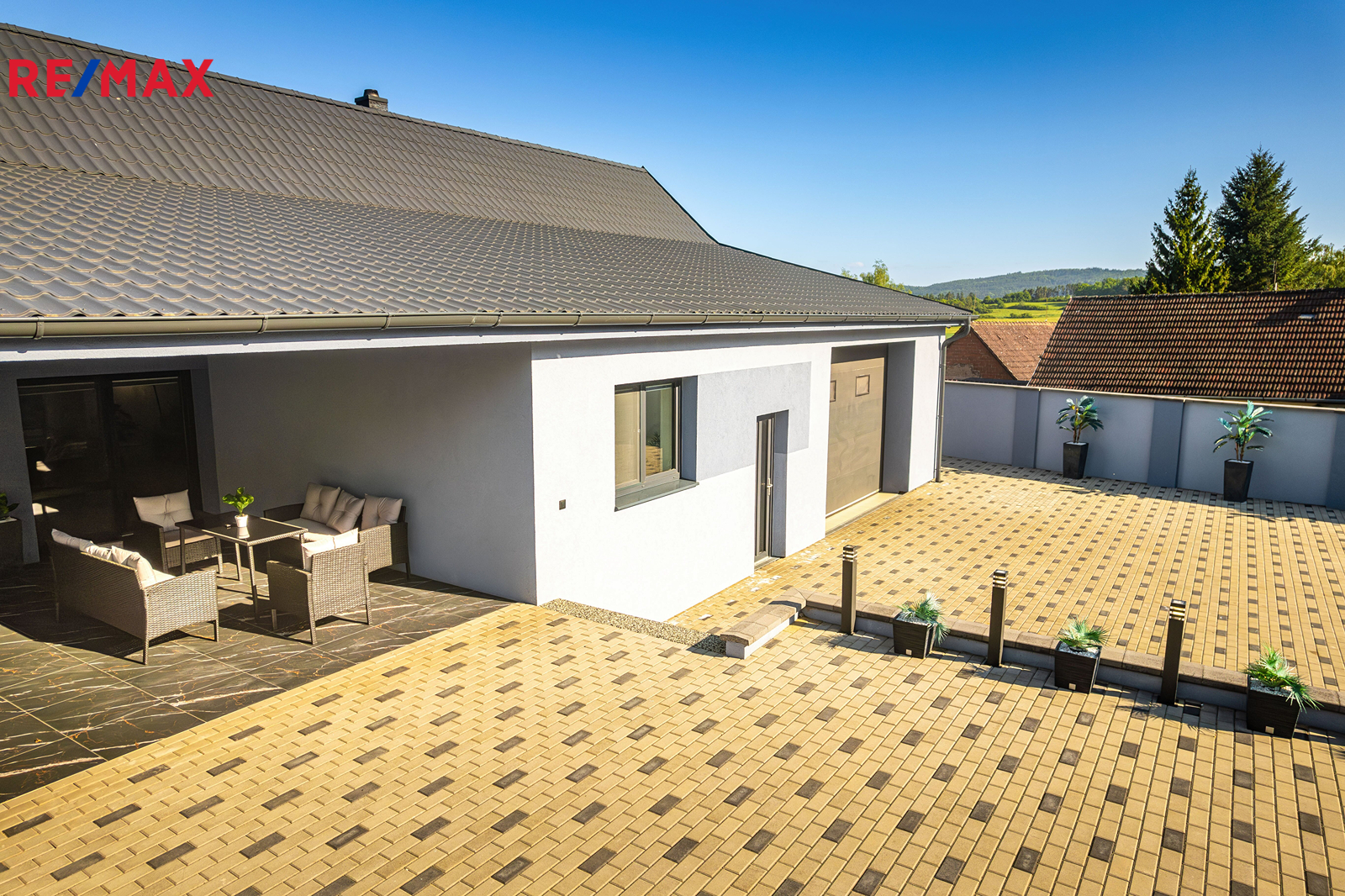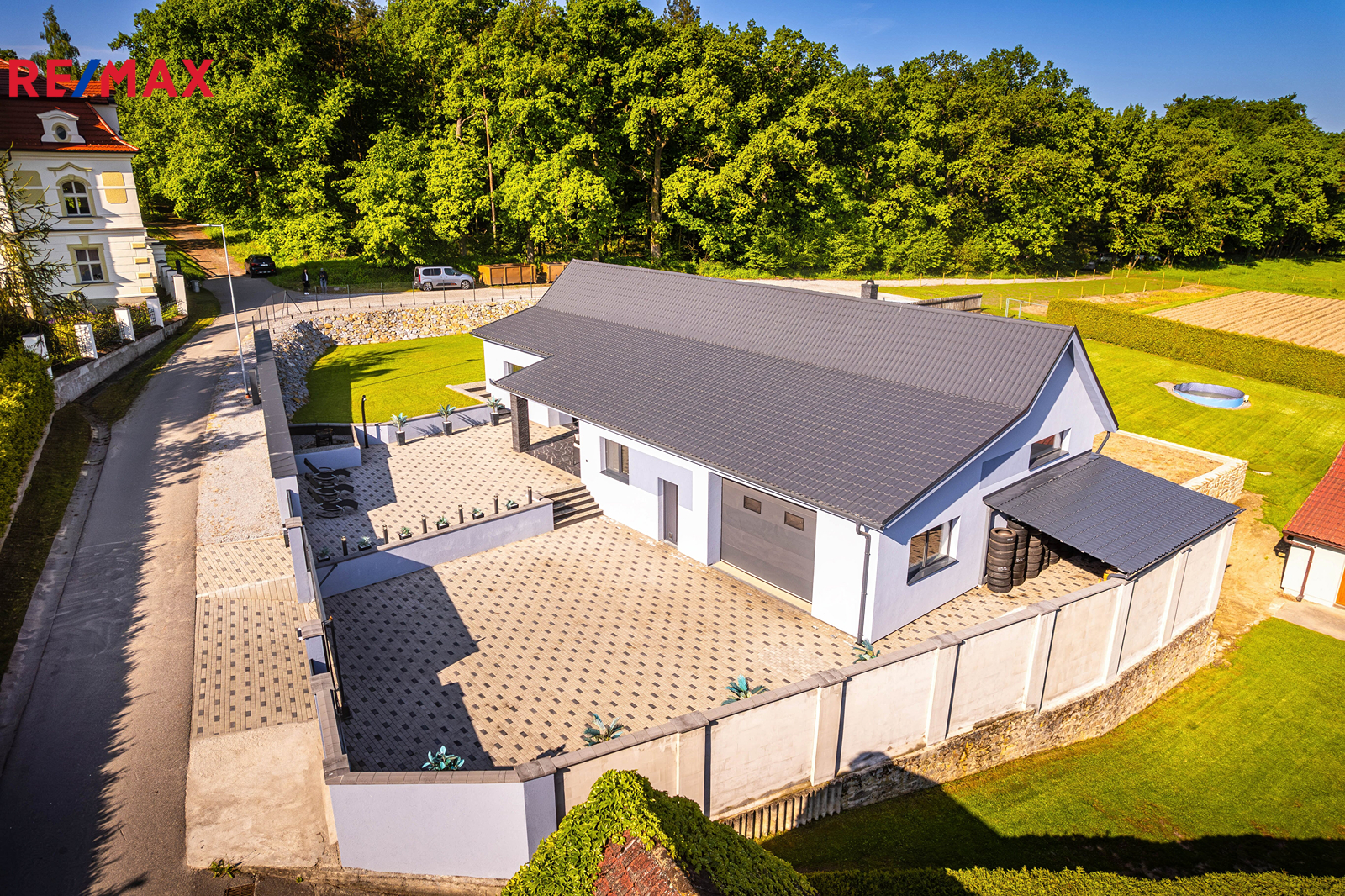 Dům má zastavěnou plochu 171 m² a stojí na pozemku o celkové výměře 1 730 m². Na zastavěné ploše a nádvoří o velikosti 566 m² se nachází samotný dům, technická místnost a upravený dvůr se zahradní sprchou, posezením a elektrickou bránou pro pohodlný vjezd. Součástí je také zahrada o výměře 368 m² s pečlivě udržovaným trávníkem, vhodná pro relax i zahradničení. Další pozemek o velikosti 796 m² slouží nyní jako parkovací plocha, nabízí se však i možnost rozšíření zahrady.