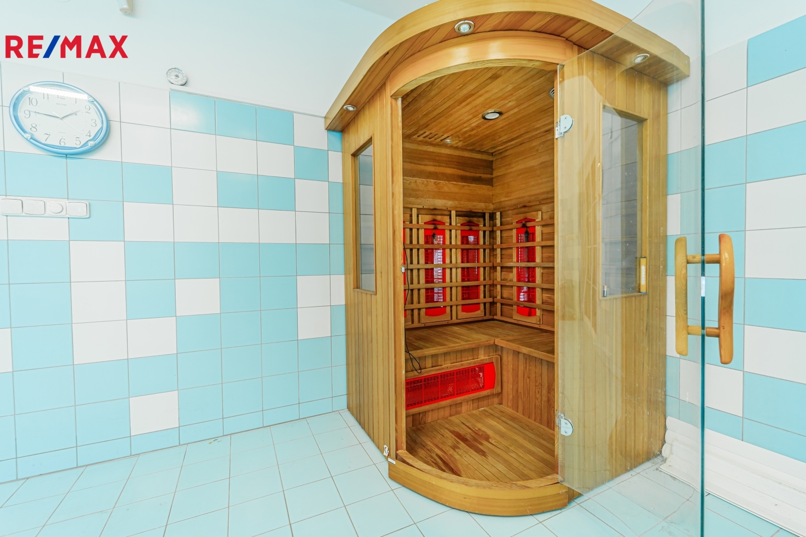 V přízemí domu se nachází vstupní hala s centrálním schodištěm a krbem, obývací pokoj propojený s kuchyní a jídelnou (77 m2), ložnice, koupelna a místnost s vnitřním bazénem (75 m2). Dále pak samostatná toaleta, spižírna. V patře jsou pak dvě prostorné místnosti (66 a 98 m2), ložnice, kuchyňka a koupelna. V obou koupelnách je vana i vyzděný sprchový kout.