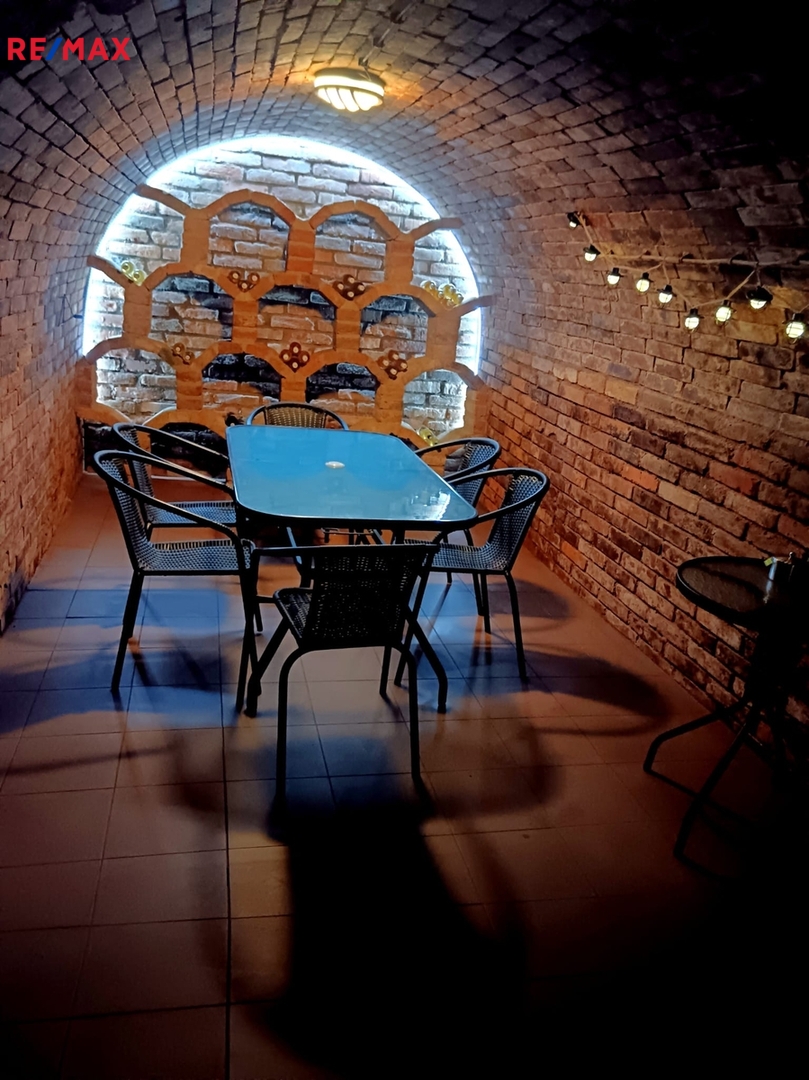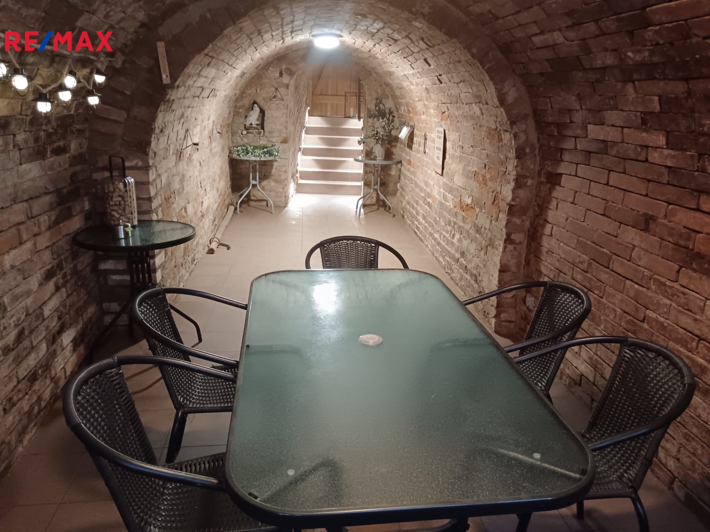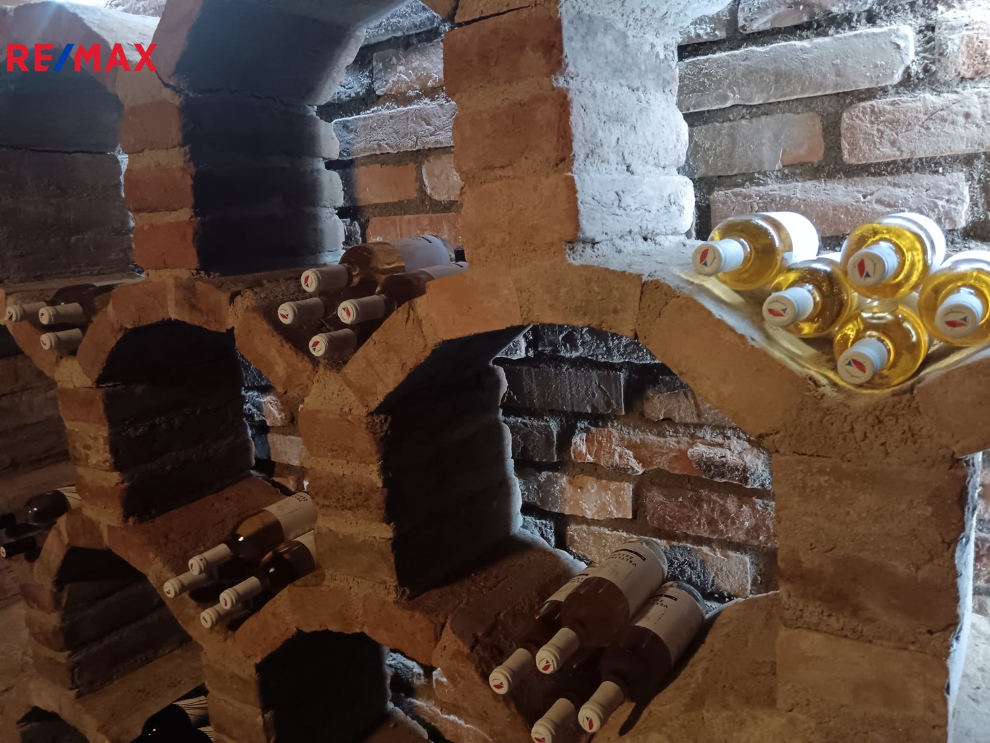 Součástí nabídky je i originální vinný sklípek přímo pod apartmánem. Původní lisovna byla přestavěna na útulnou obytnou místnost s vlastním barem, plně vybavenou kuchyní (lednice, mrazák, myčka, varná deska) a stylovým posezením. V zimě zde vykouzlí nezaměnitelnou atmosféru italská kamna na dřevo. Tento prostor je zcela nezávislý na apartmánu a nabízí skvělé možnosti – od romantických večerů až po podnikatelské využití. K dispozici je také koupelna s toaletou, pračka a manželská postel.