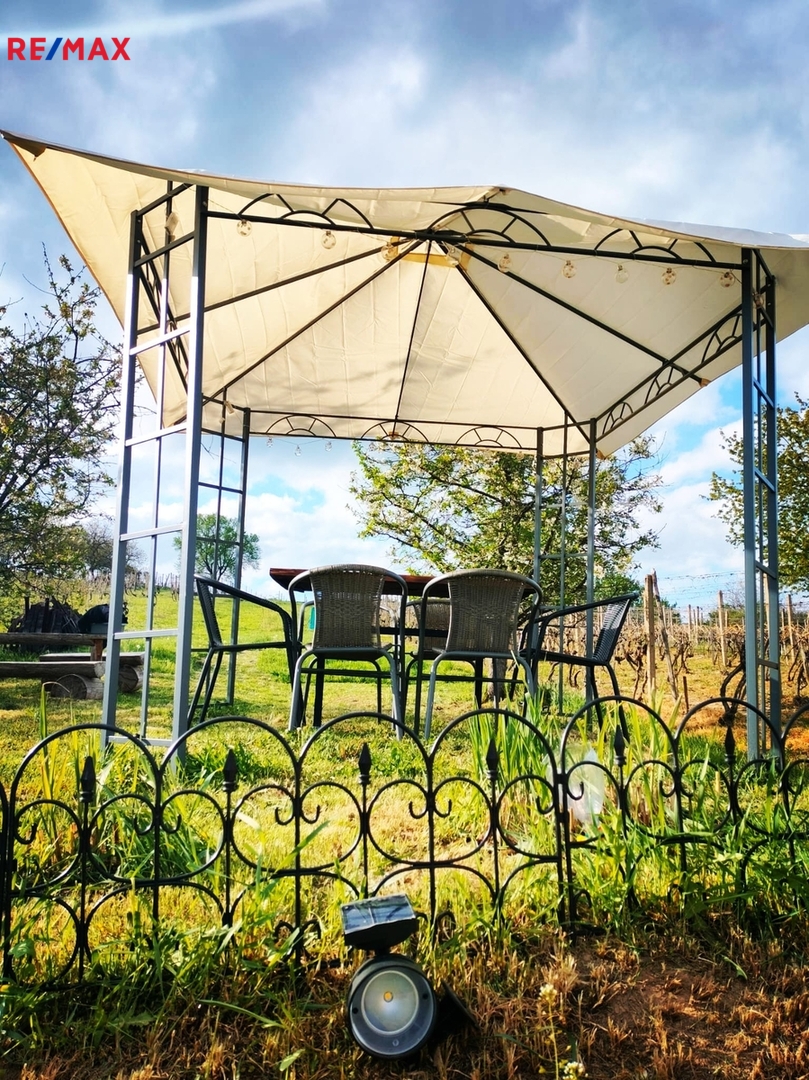 Součástí je i rozsáhlý pozemek o velikosti cca 1 800 m², částečně osazený vinnou révou. Vinici můžete sami opečovávat a těšit se z vlastní úrody, nebo ji ponechat v péči místních vinařů, kteří se postarají o vše potřebné.