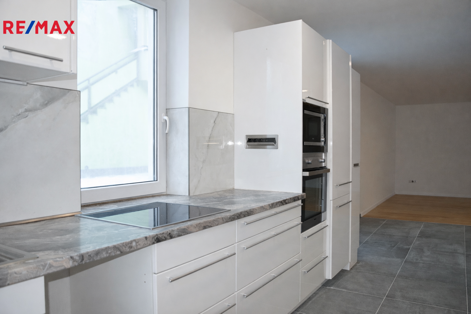 Z obývacího pokoje je vstup na terasu a do zahrady o výměře 514 m².