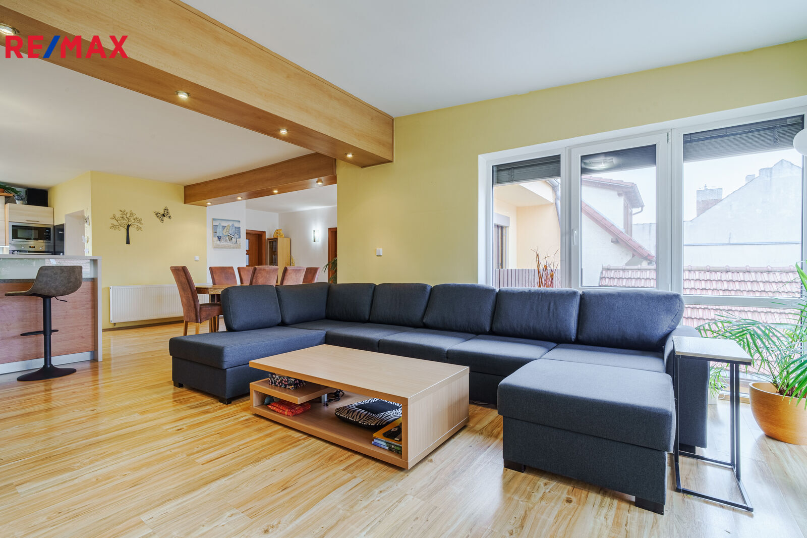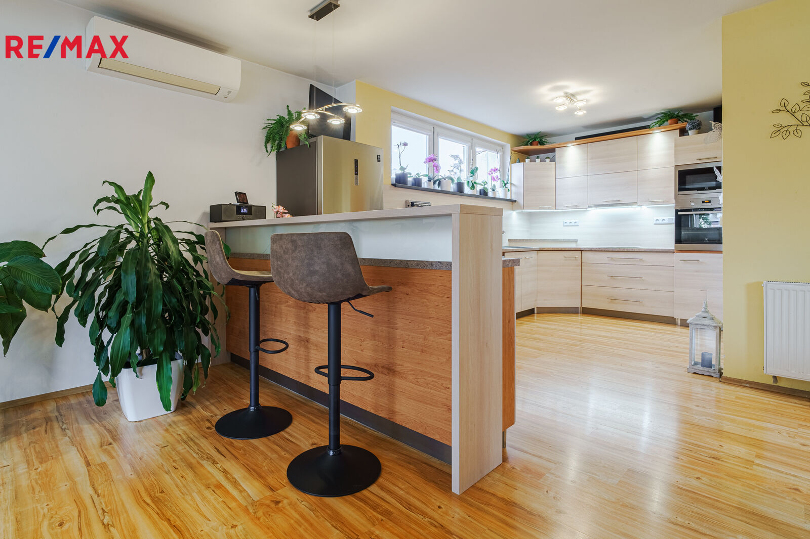 - Moderní dispozice: Prostorný obývací pokoj s jídelním a kuchyňským koutem, dvě samostatné ložnice.
