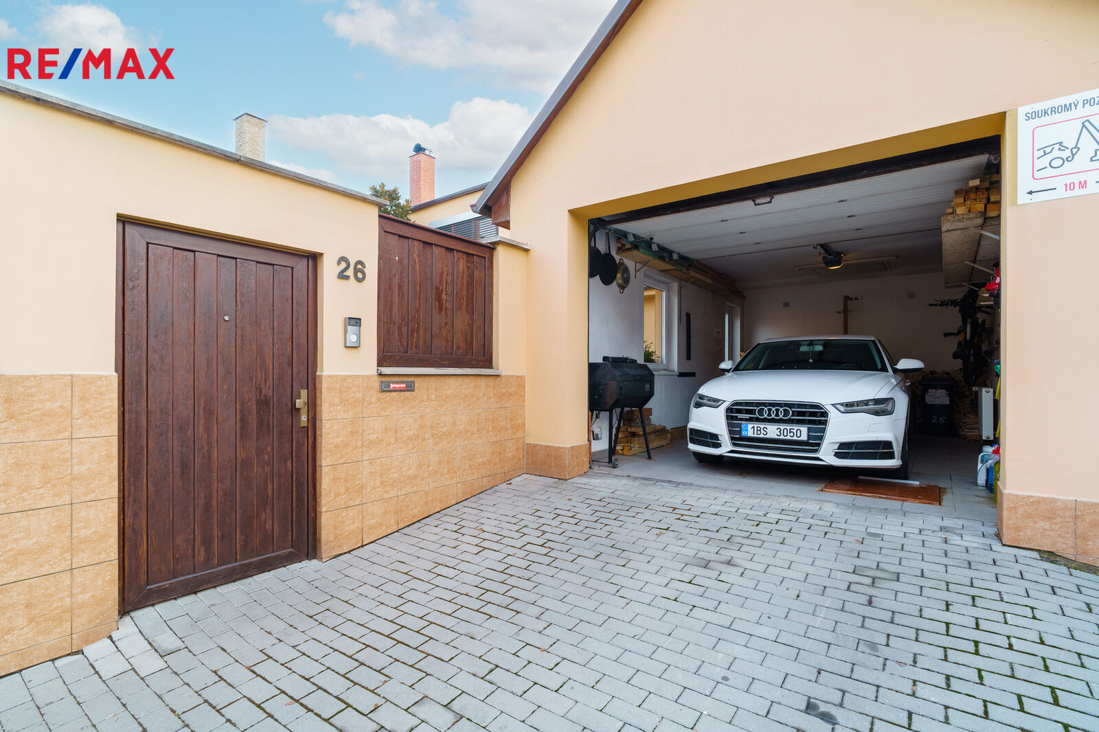 - Parkování: Kromě garáže jsou k dispozici další 3 parkovací stání na vlastním pozemku před domem.