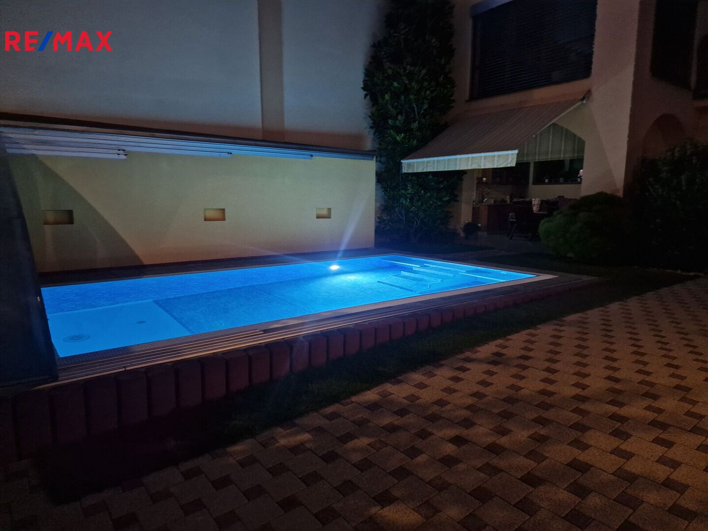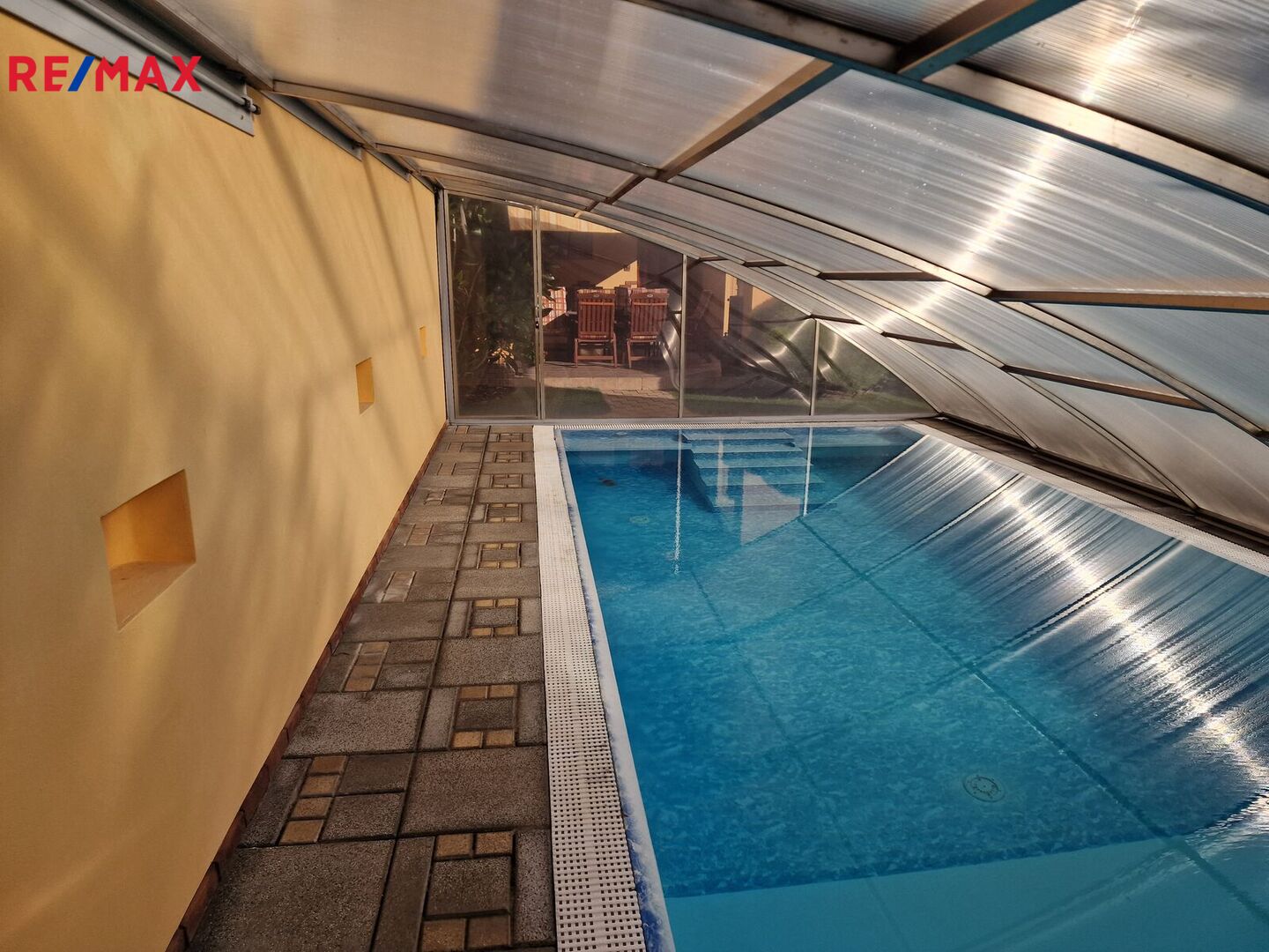 - Krytý bazén: Bazén s protiproudem přímo navazuje na terasu, což poskytuje prostor pro relaxaci i aktivní odpočinek.