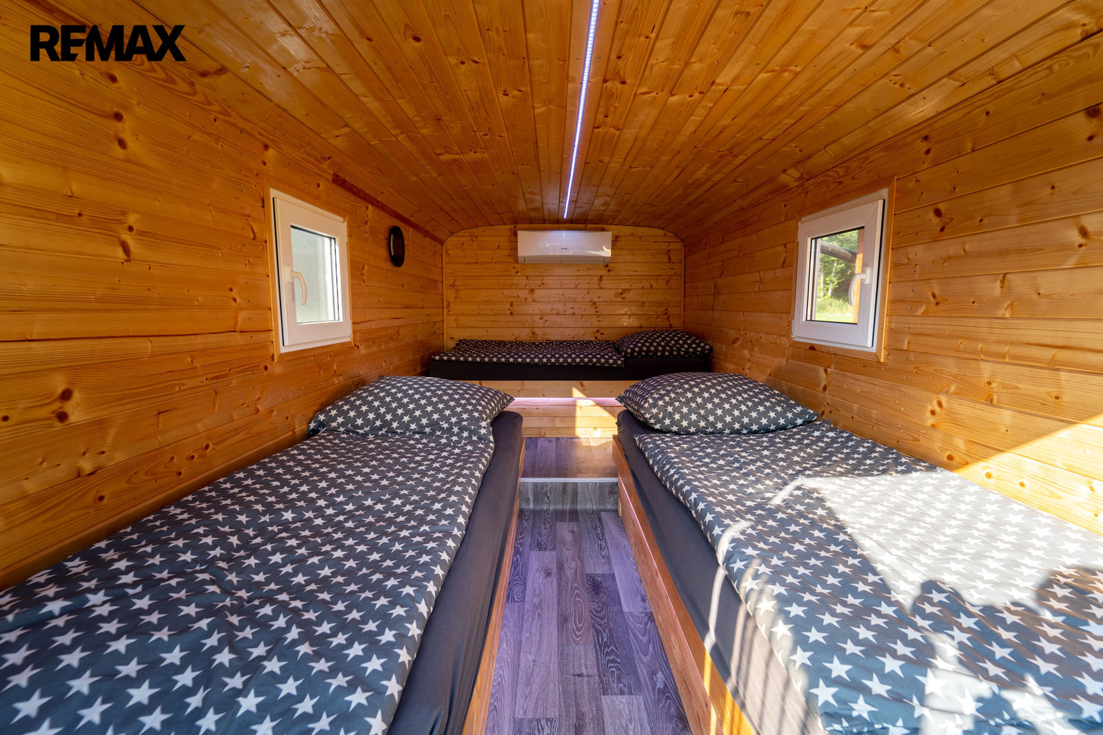 Spaní na akci zajišťují 4 x RETRO vojenské maringotky, každá má 3 x spaní a tak je 12 x lůžek s klimatizací, zásuvkou na nabíjení telefonu, plastovým oknem a led barevným podsvícením – pohodlí, které na první pohled není vidět.