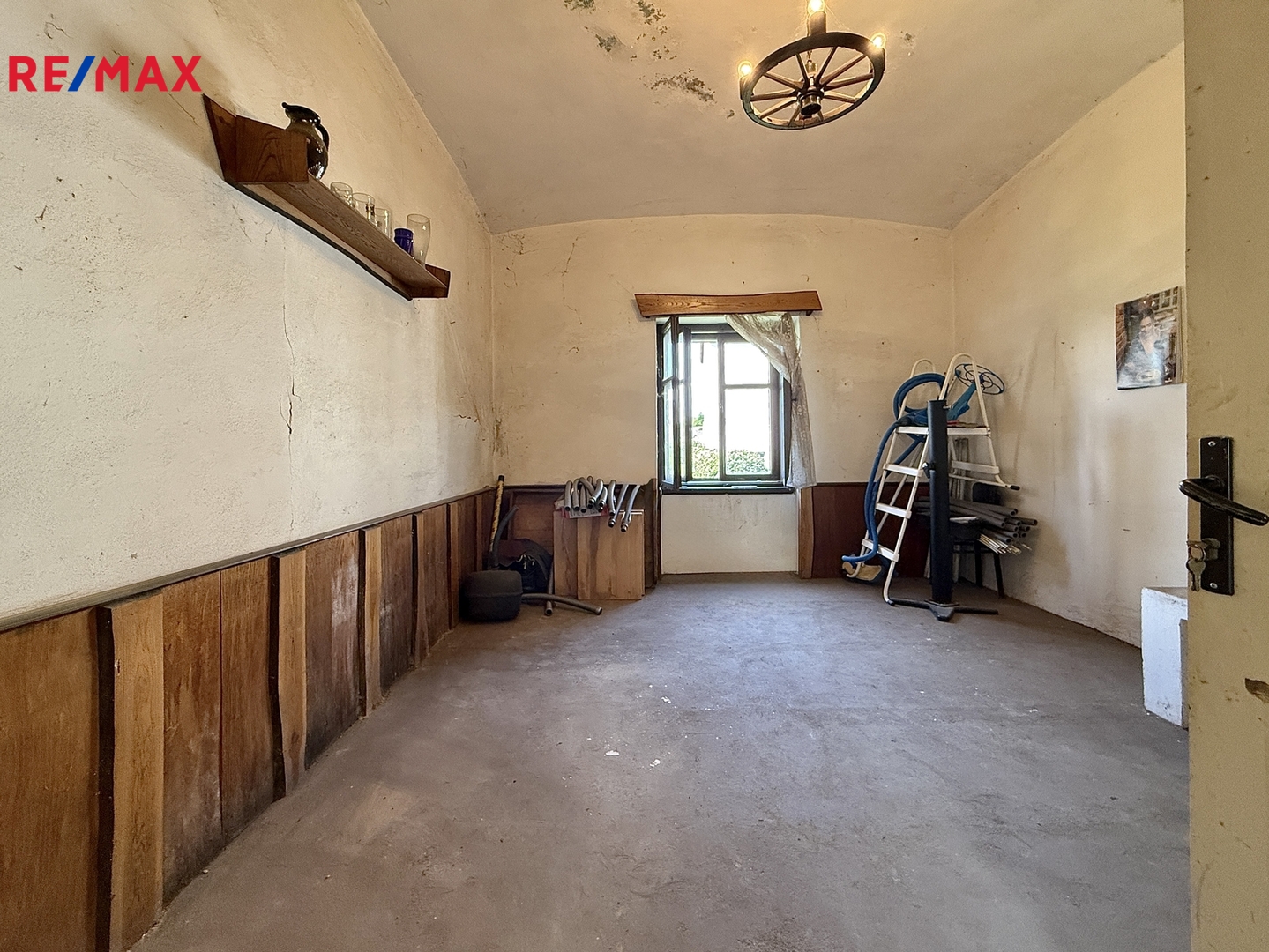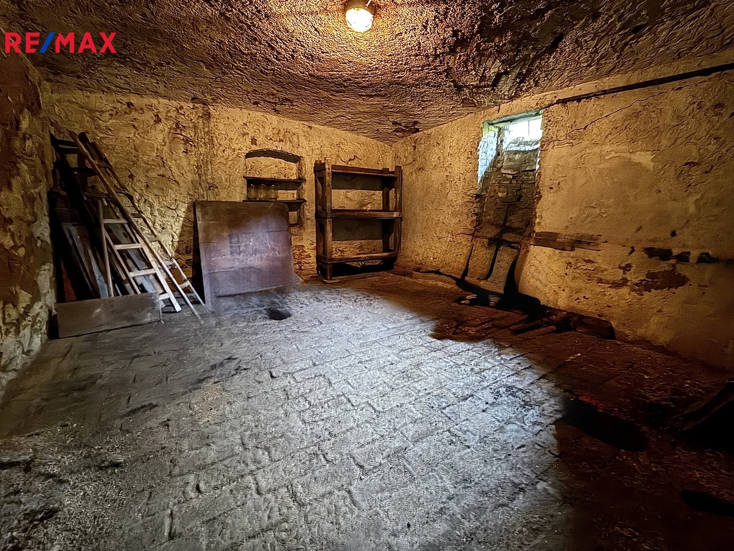 Suterén: Vstup je z opačné strany od zahrady. Jedna část byla využívána jako černá kuchyně s otevřeným krbem, další pak jako sklady pro ovoce a zeleniny.