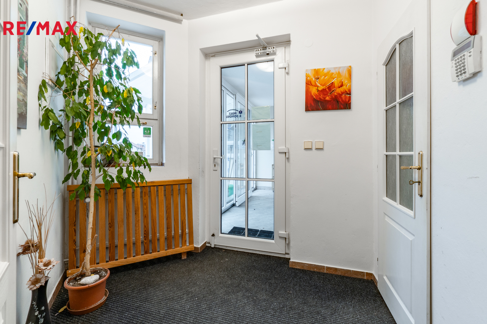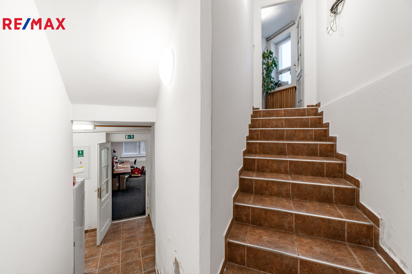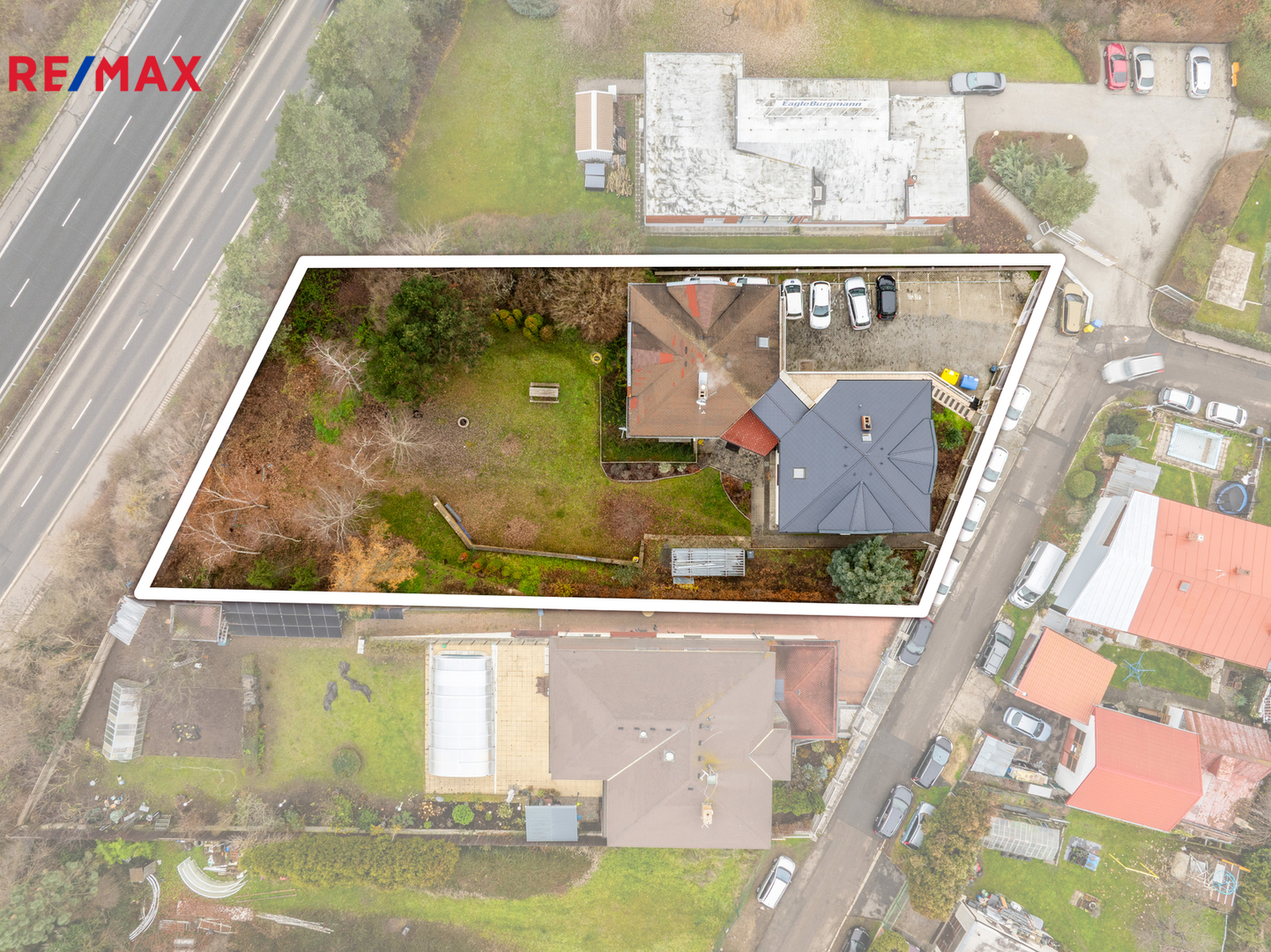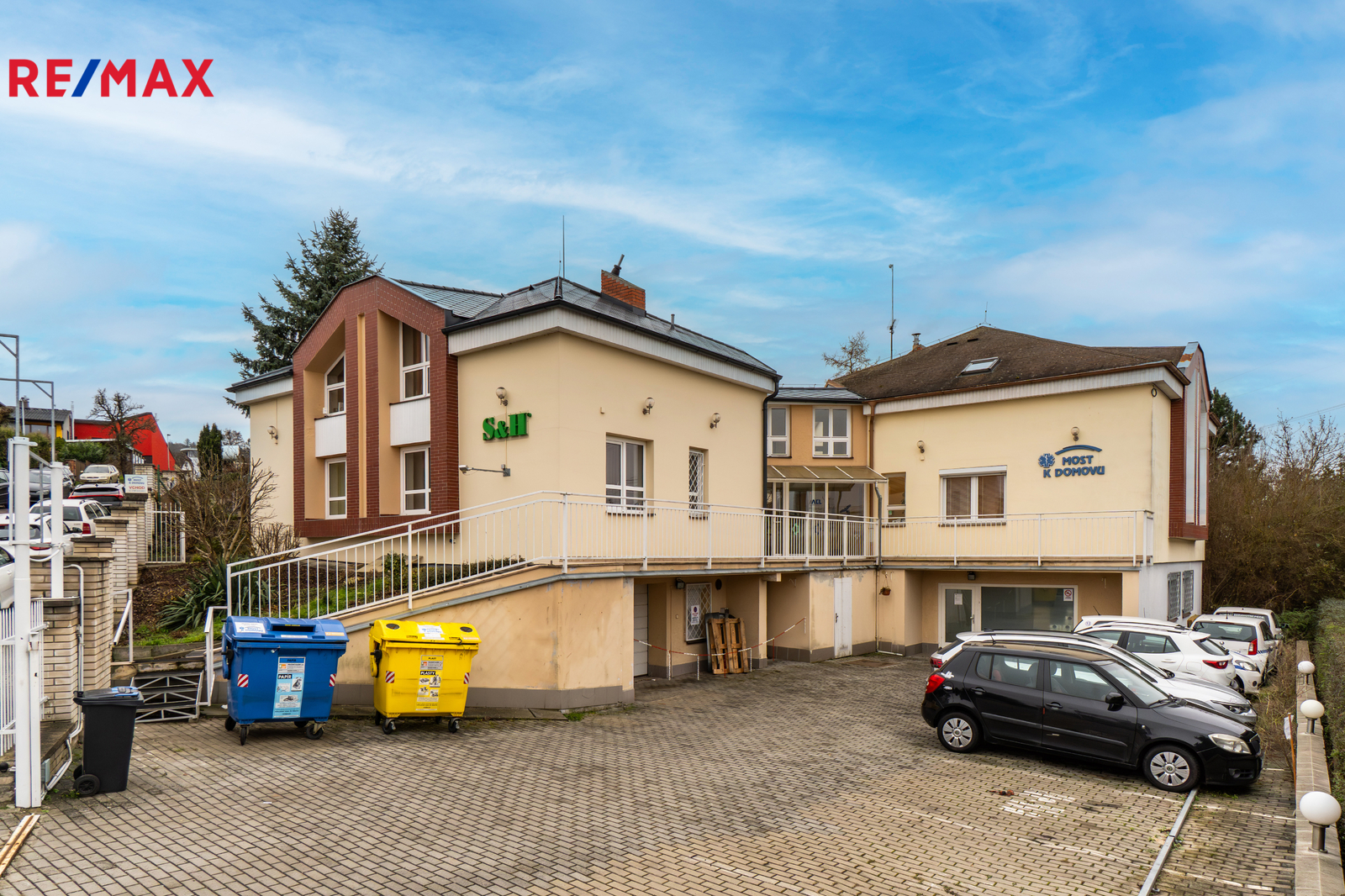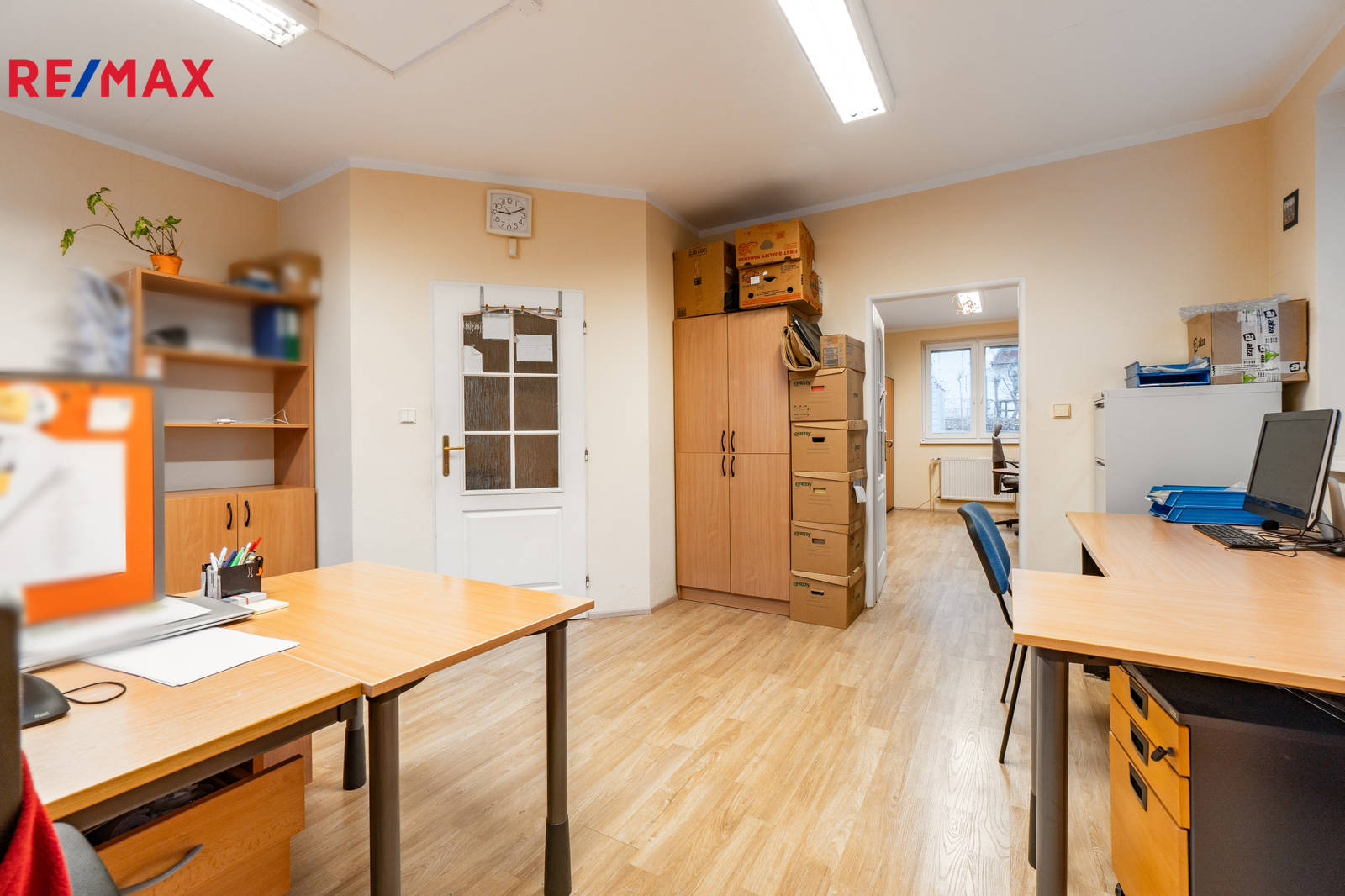 Nemovitost je součástí komplexu dvou budov, které byly původně stavebně propojené. Aktuálně jsou obě administrativní budovy vlastnicky rozdělené a předmětem prodeje je z pohledu od vstupu zadní budova. Zahrada a parkovací plocha mají celkovou výměru 1 584 m² (samotná parkovací plocha cca 200 m²) - tyto pozemky jsou v podílovém spoluvlastnictví a předmětem prodeje je spoluvlastnický podíl ve výši 2/3.