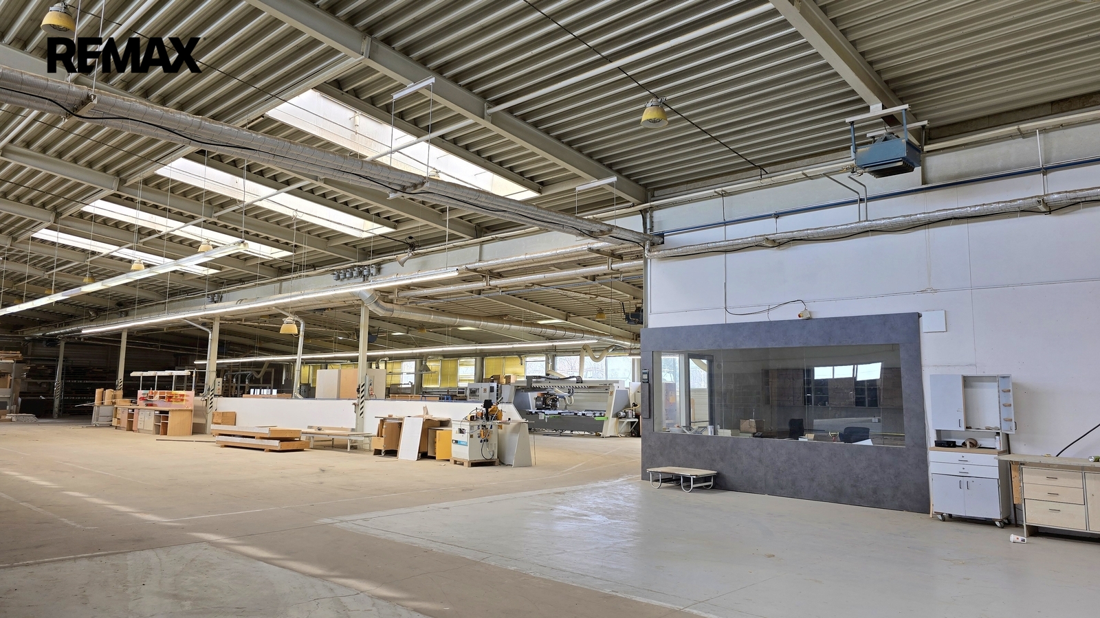 Součástí areálu je administrativní budova se showroomem a zázemím, navazující výrobní hala, samostatný skladovací objekt a technické zázemí včetně kotelny se silem. Celková výměra pozemků činí 7 180 m², započitatelná užitná plocha hlavních provozních částí přibližně 3 792 m². Areál byl dokončen v roce 1998, je dobře udržovaný, přístupný po zpevněné komunikaci a napojený na základní inženýrské sítě. K dispozici jsou také zpevněné manipulační plochy, oplocení areálu, trafostanice a další provozní vybavení.