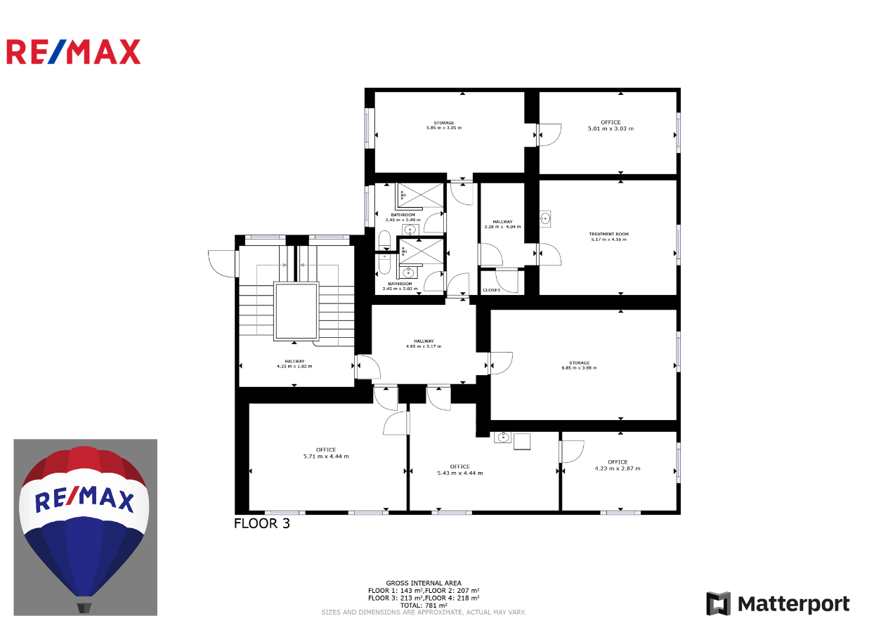 Celková užitná plocha nemovitosti cca 800 m², jedno podzemní a tři nadzemní patra.