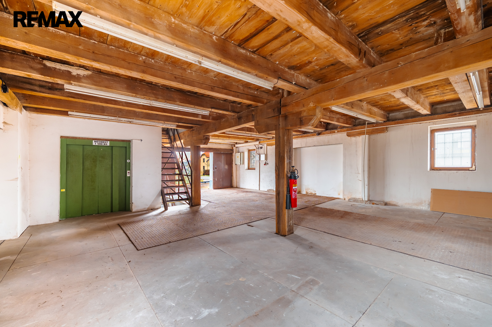 Podlaží jsou propojena nákladním výtahem o nosnosti 1500kg, což výrazně usnadňuje manipulaci se zbožím i materiálem. Na průjezdné straně objektu se nachází nakládací rampa, samozřejmostí je bezproblémový příjezd pro kamiony i nákladní vozidla – objekt je průjezdný a nabízí také možnost parkování přímo na pozemku.