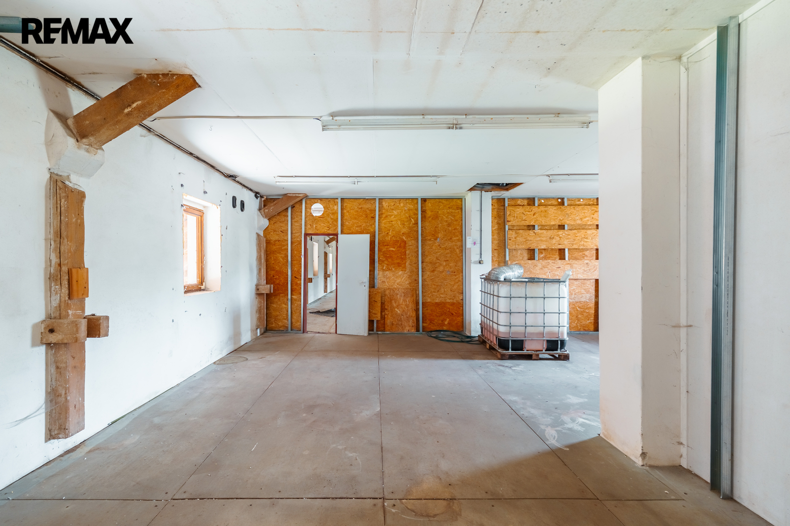 1.NP - Skladovací prostor 103,6 m2 a kanceláře 79,5m2, celkem užitná plocha 183,1 m2