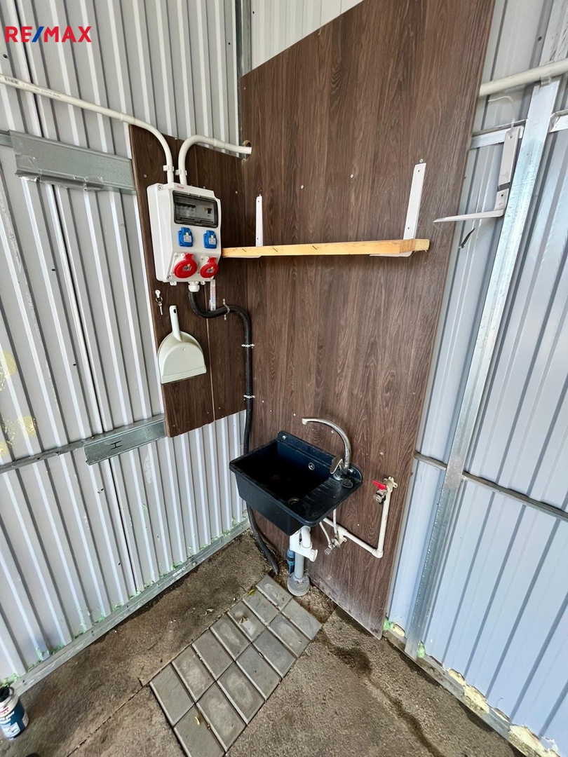 Objekt o rozměrech 6 × 4,5 m je napojen na elektřinu s podružným měřením a vodu, včetně umyvadla. Praktické zázemí spolu s volnou venkovní plochou o celkové výměře 100 m² vytváří prostor pro různé typy využití. Může sloužit jako zázemí pro menší provoz, sklad materiálu, uskladnění nářadí, techniky nebo vybavení. Součástí nabídky je možnost parkování přímo v areálu a v případě potřeby lze domluvit rozšíření venkovních ploch.