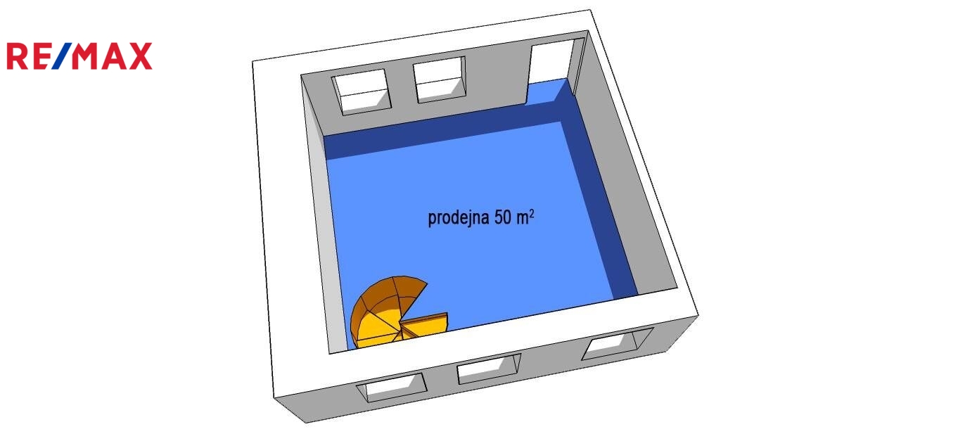 Prostor je rozdělen do dvou úrovní – přízemí o velikosti 50 m² slouží jako hlavní obchodní plocha s přímým vstupem z ulice Novobranská, zatímco spodní část ve sklepení (71 m²) nabízí zázemí, sklad nebo doplňkový prostor pro provoz. Díky tomuto členění je prostor vhodný pro širokou škálu využití – butik, kavárnu, kosmetické studio, showroom nebo kancelář s prezentačním prostorem.