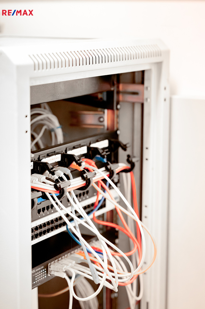 Součástí prostoru je plnohodnotné zázemí: denní místnost s kuchyňkou, sociální zařízení, šatna, úklidová místnost, sklad a klimatizovaná serverovna.