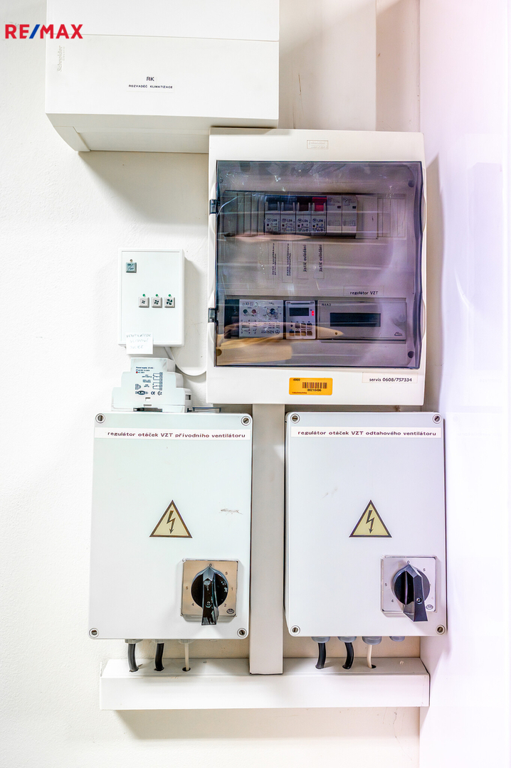 Nemovitost byla v minulosti využívána jako bankovní pobočka, tomu odpovídá i její technická úroveň. Trezorová místnost, zabezpečovací systém i infrastruktura zohledňují provoz, kde byla bezpečnost klíčová.