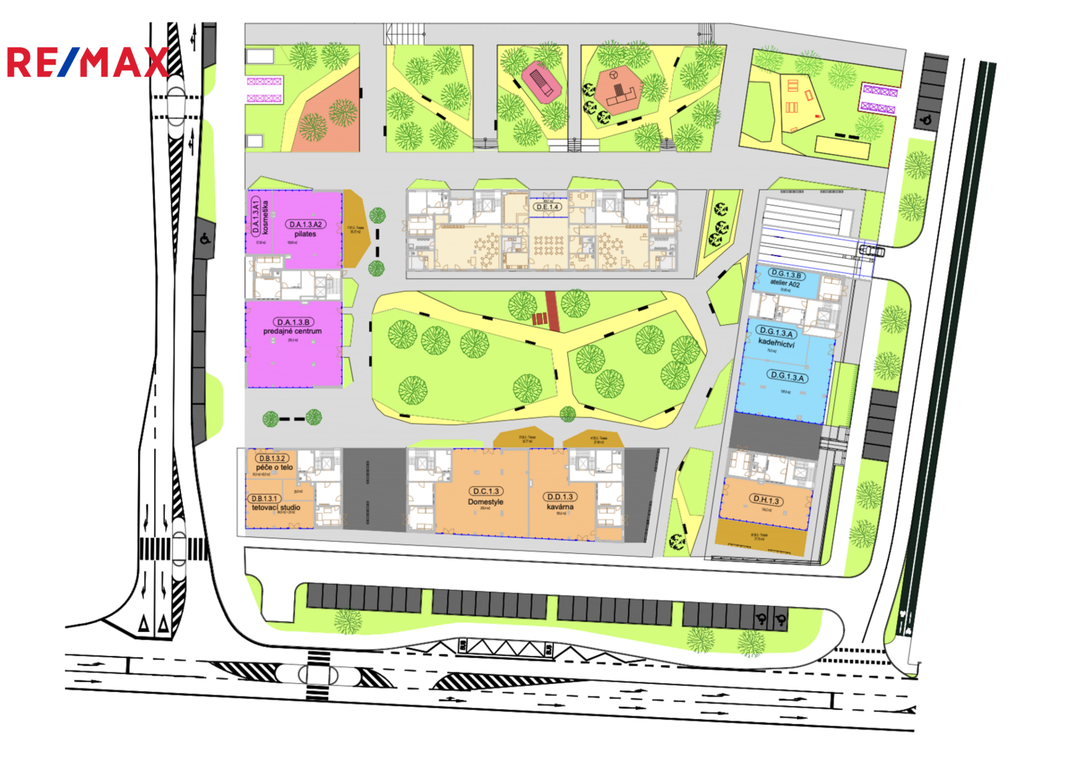 Prostor je vhodný například pro květinářství, farmářský obchod, případně další služby každodenní potřeby rezidentů. Koncept s přímým kontaktem s ulicí a možností venkovního prodeje vytváří přirozené místo setkávání v rámci čtvrti.