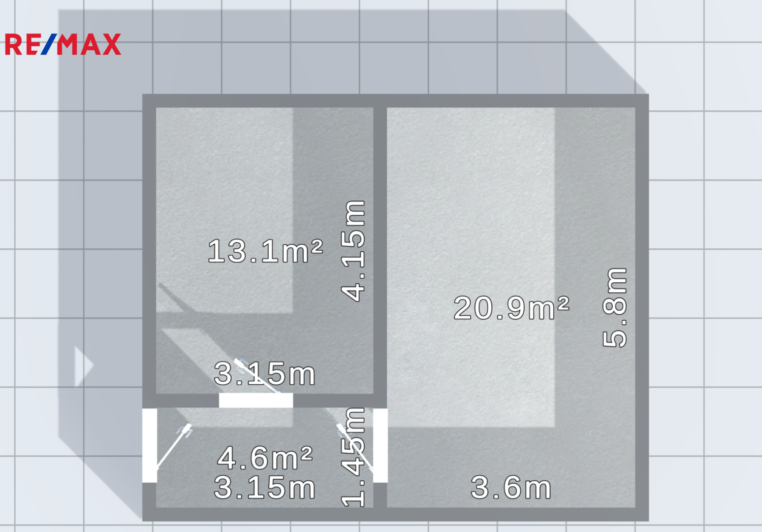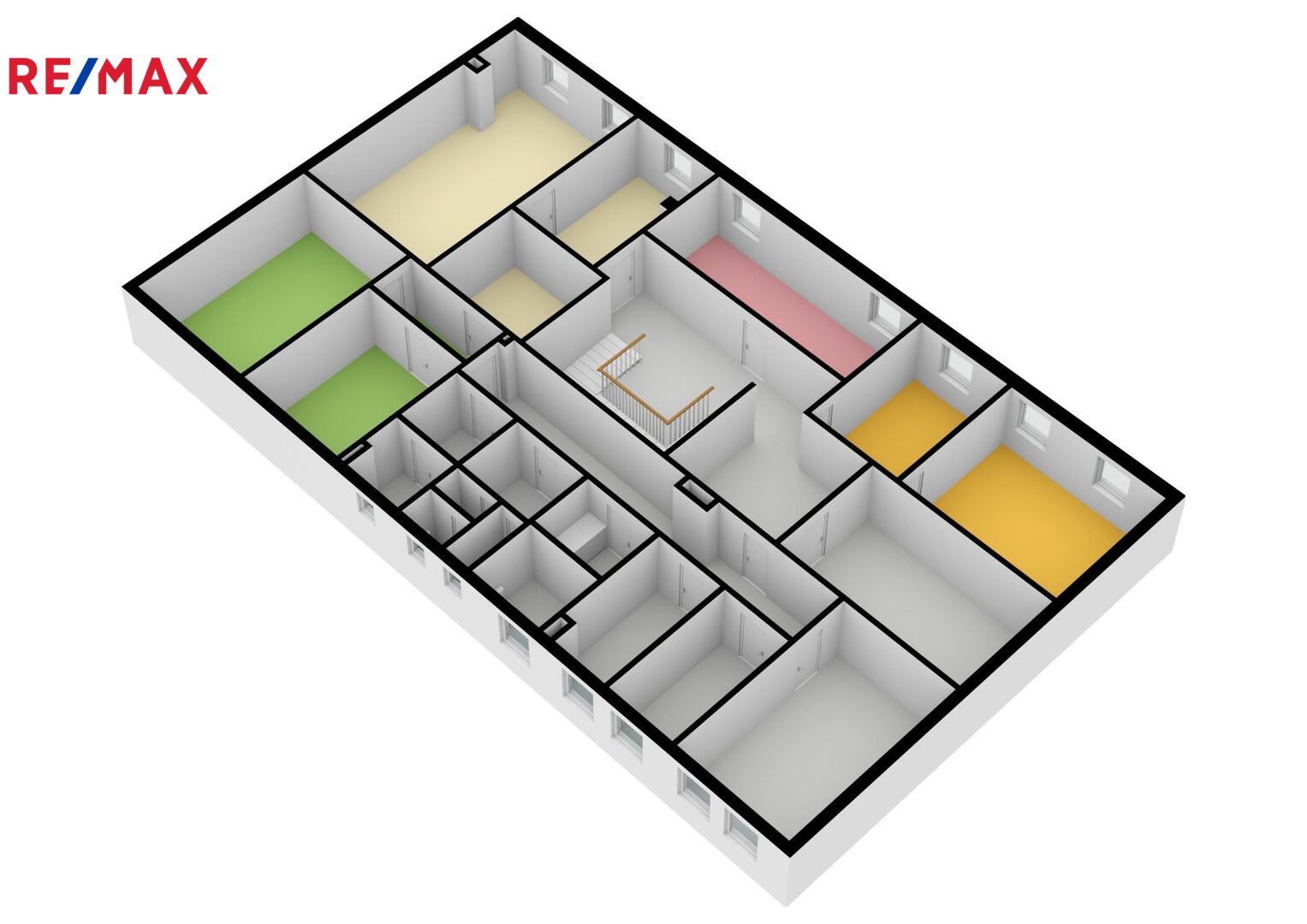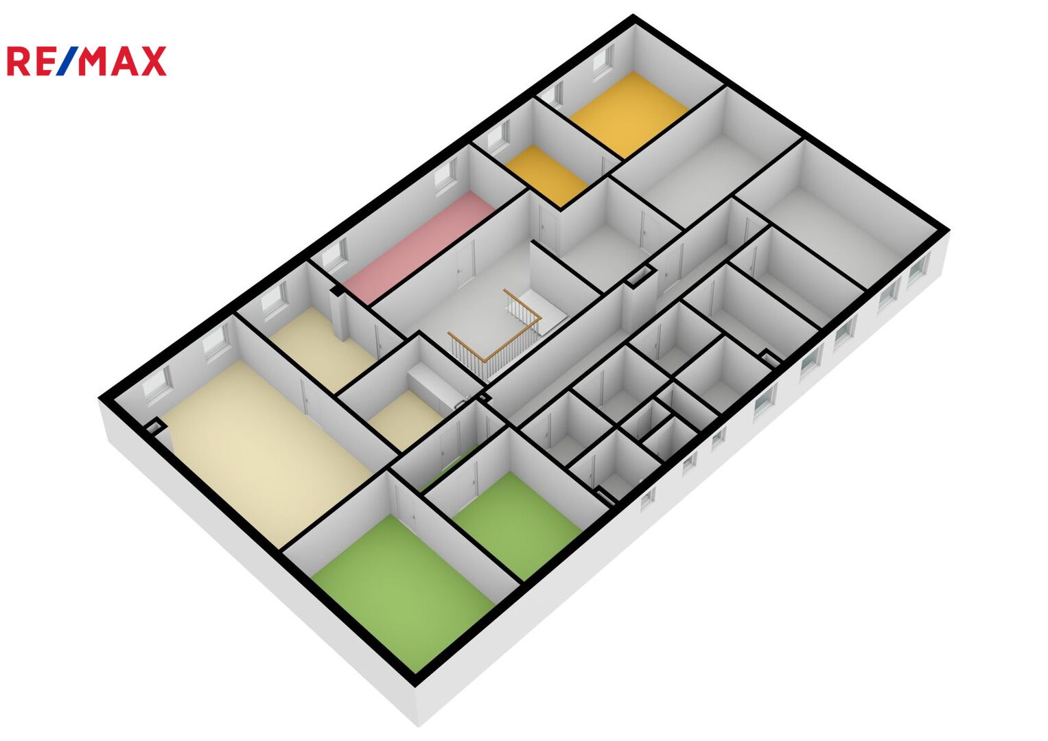 Kancelář se nachází v prvním NP, rozměry jsou: chodba 4,6 m2, místnost 13,1 m2 a druhá místnost 20,8 m2. Sociální zázemí na chodbě, odděleně dámské a pánské.