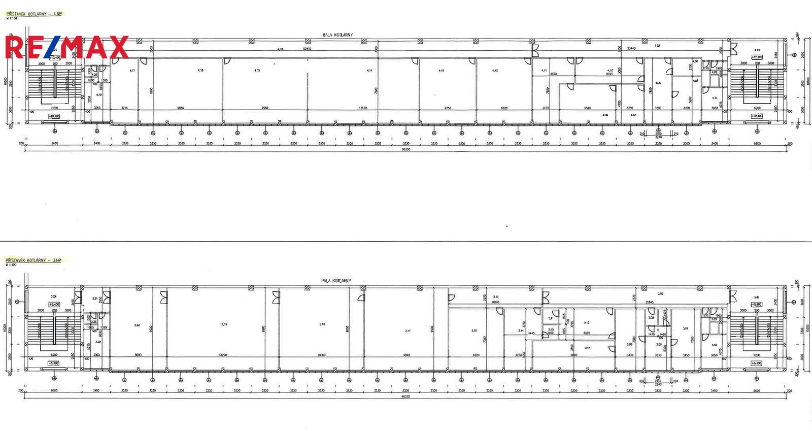 U budov jsou průmyslové haly vhodné pro skladování nebo výrobu s prostorami od 200 m2 do 5000 m2.