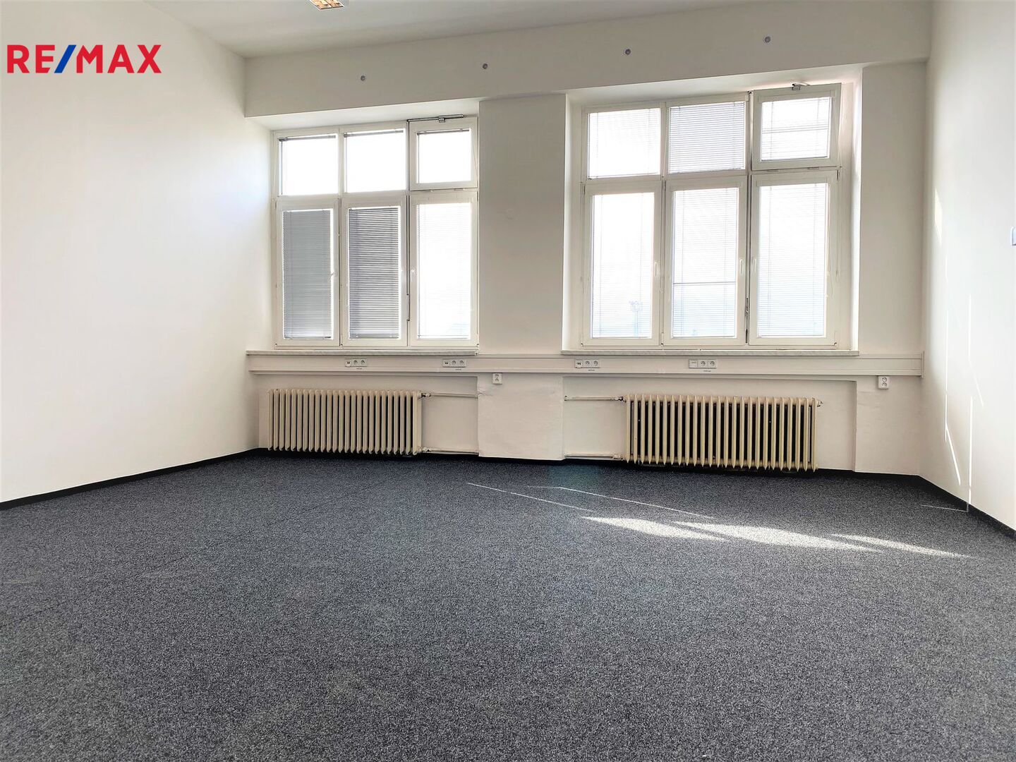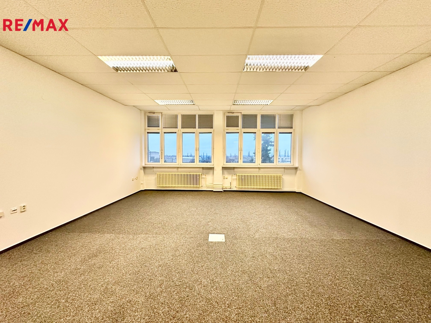 Stěny jsou čerstvě vymalované a podlahy mají nové zátěžové koberce. V budově jsou rozvedeny sítě LAN a 230 V.