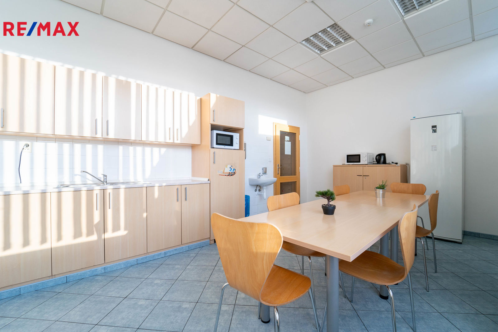 Součástí nájmu je kuchyňka s jídelnou, místnost pro jednání v soukromý a oddělené dámské a pánské toalety, údržba.