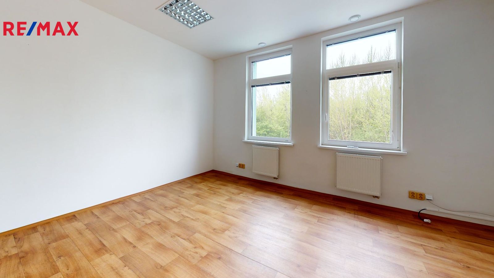 Kancelář je vybavena klimatizací s funkcí vytápění, má plastová okna a podlahu z marmolea.
