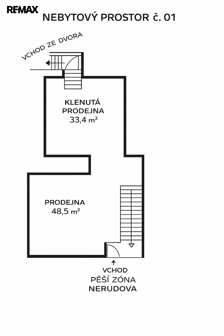 Nabízím k pronájmu obchodní prostory v centru města Písku na pěší zóně v Nerudově ulici o výměře 82 m2. Jedná se o historické prostory se zachovalými prvky gotického měšťanského domu, který zde dříve stál. Vchod s výlohou přímo z ulice Nerudova, je možné používat i další vchod přes otevřený dvůr domu, stejně jako dvůr samotný a sociální zázemí s dvěma WC. V minulosti byly prostory využívány např. jako prodejna dekorativního skla, bytových doplňků či jako prodejna karibských rumů. Mohou však být upraveny pro jiná využití.