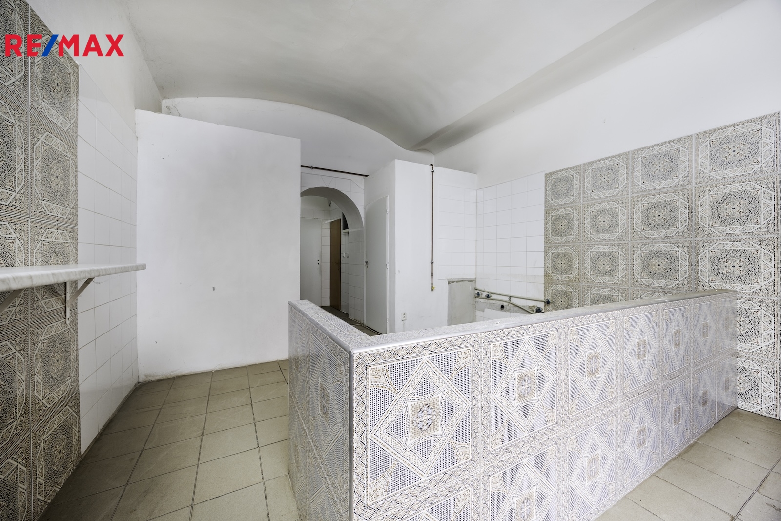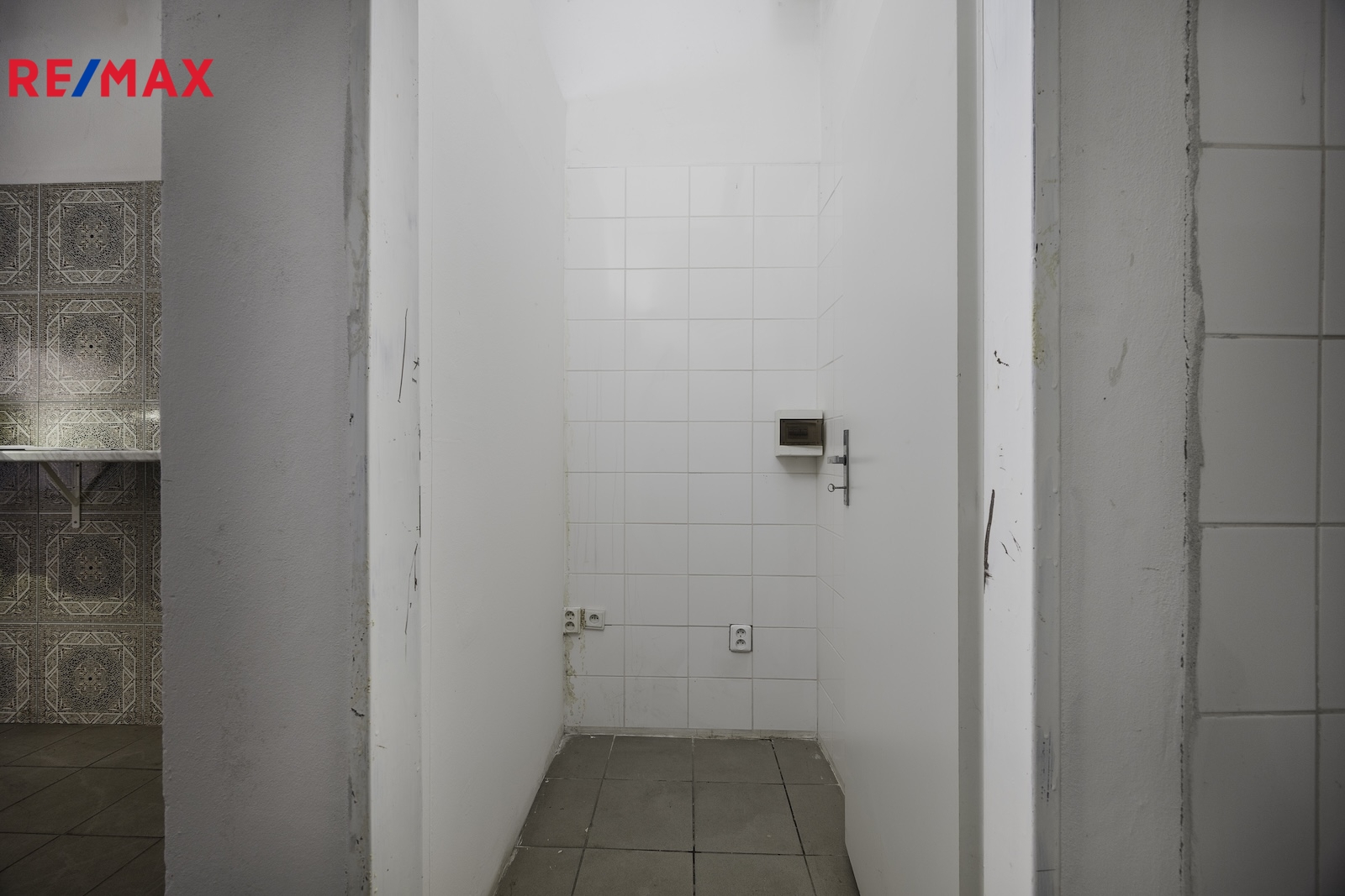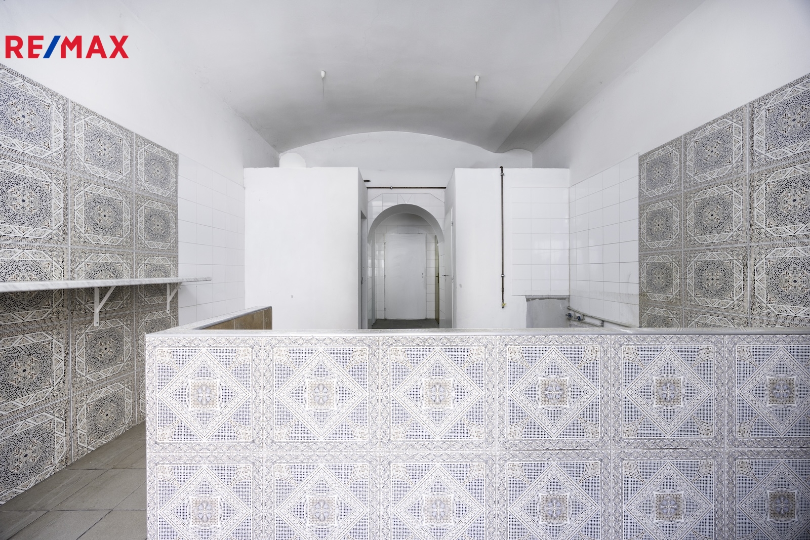 V hlavní místnosti jsou instalovány příčky (sklad, technická místnost) a pult, které lze po dohodě odstranit a rozšířit prodejní plochu (viz. vizualizace).