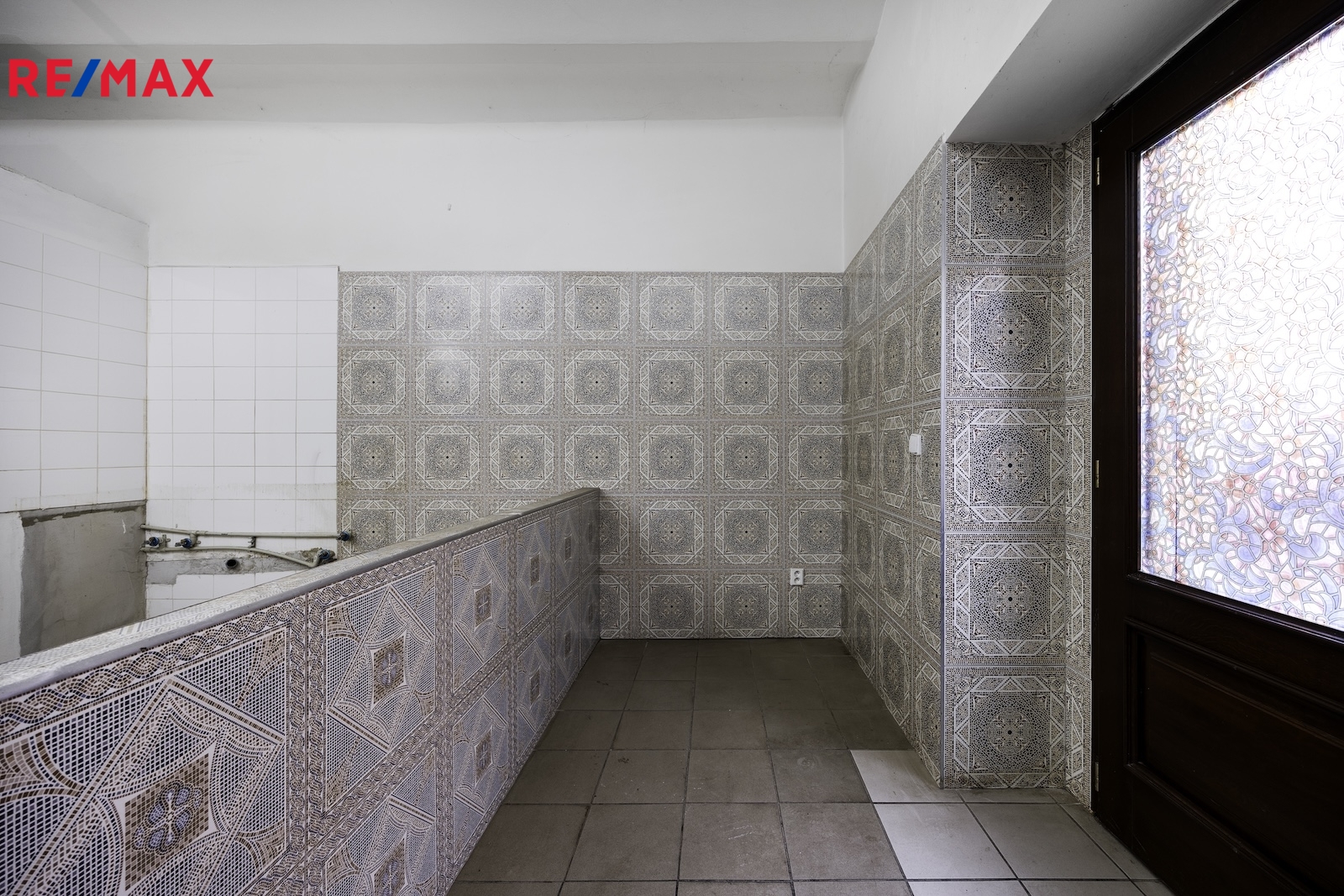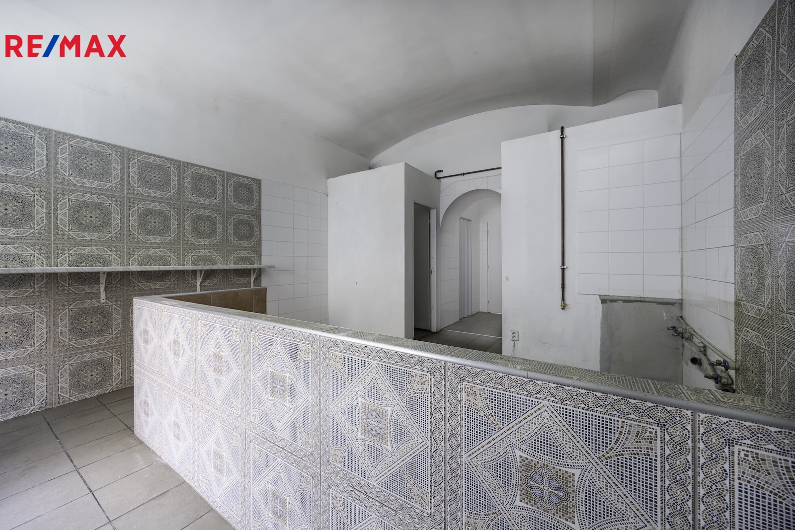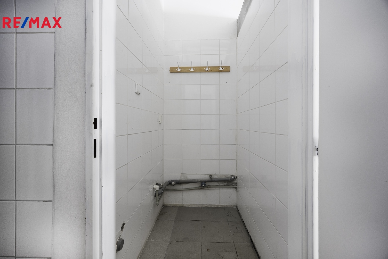 V hlavní místnosti jsou instalovány příčky (sklad, technická místnost) a pult, které lze po dohodě odstranit a rozšířit prodejní plochu (viz. vizualizace).