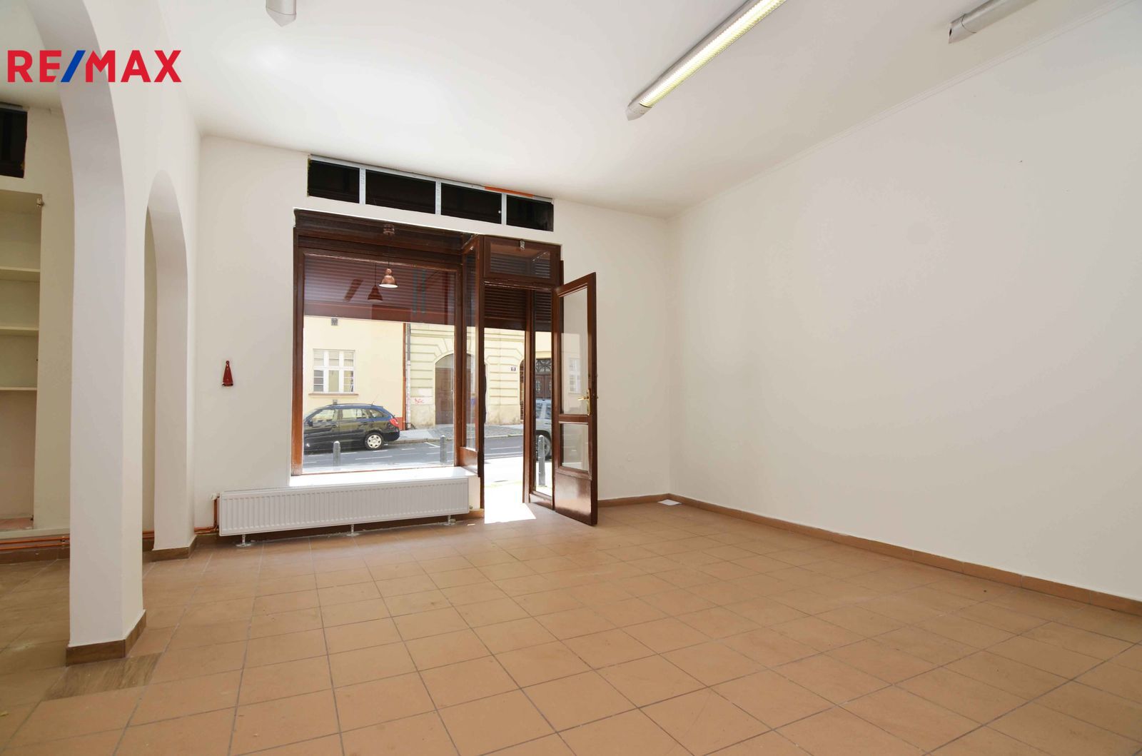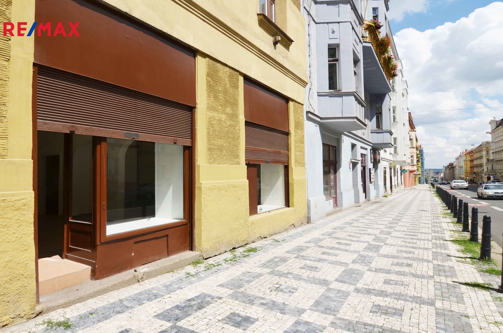 Jedná se o dvě propojené místnosti tvořící jeden celek, které mají velké prosklené výlohy s roletami přímo do ulice