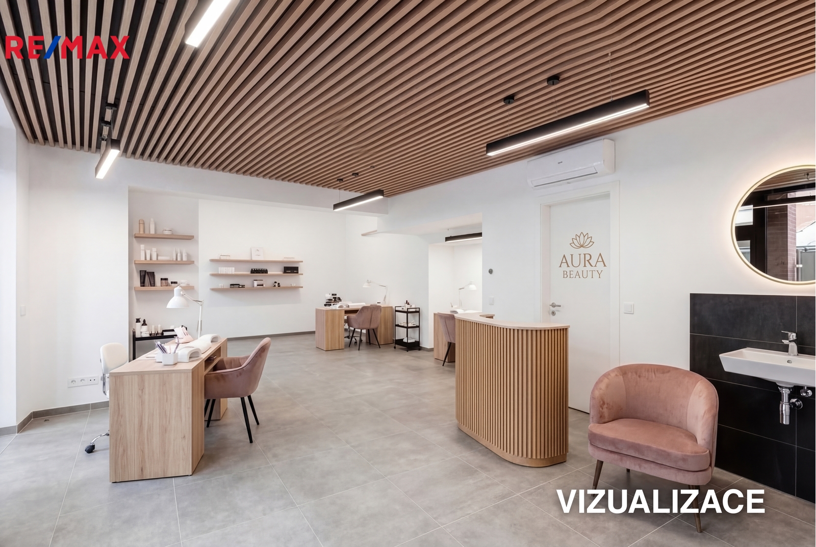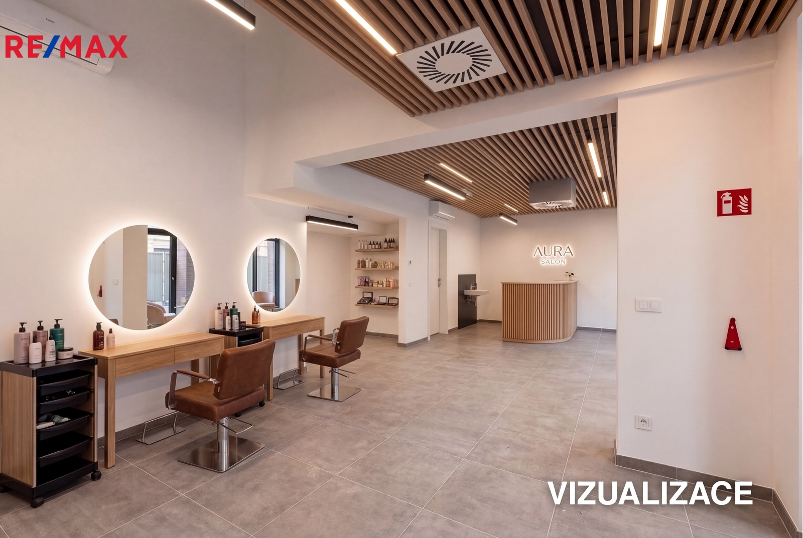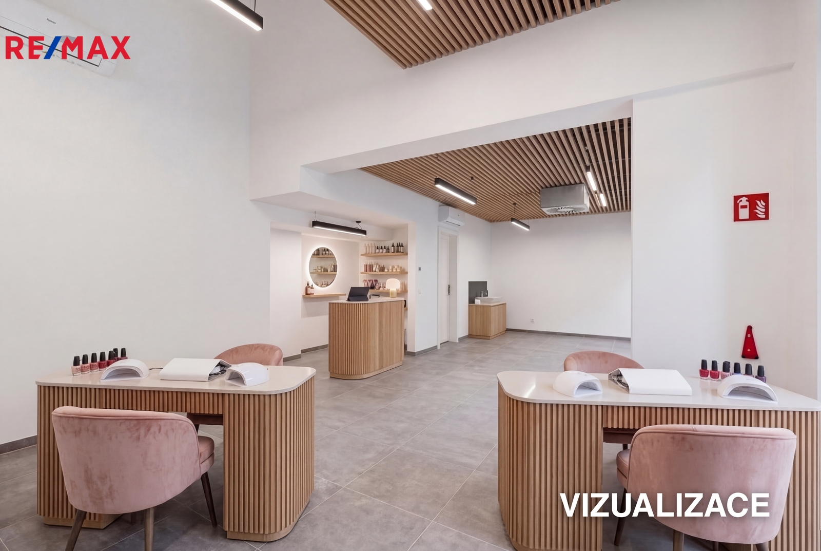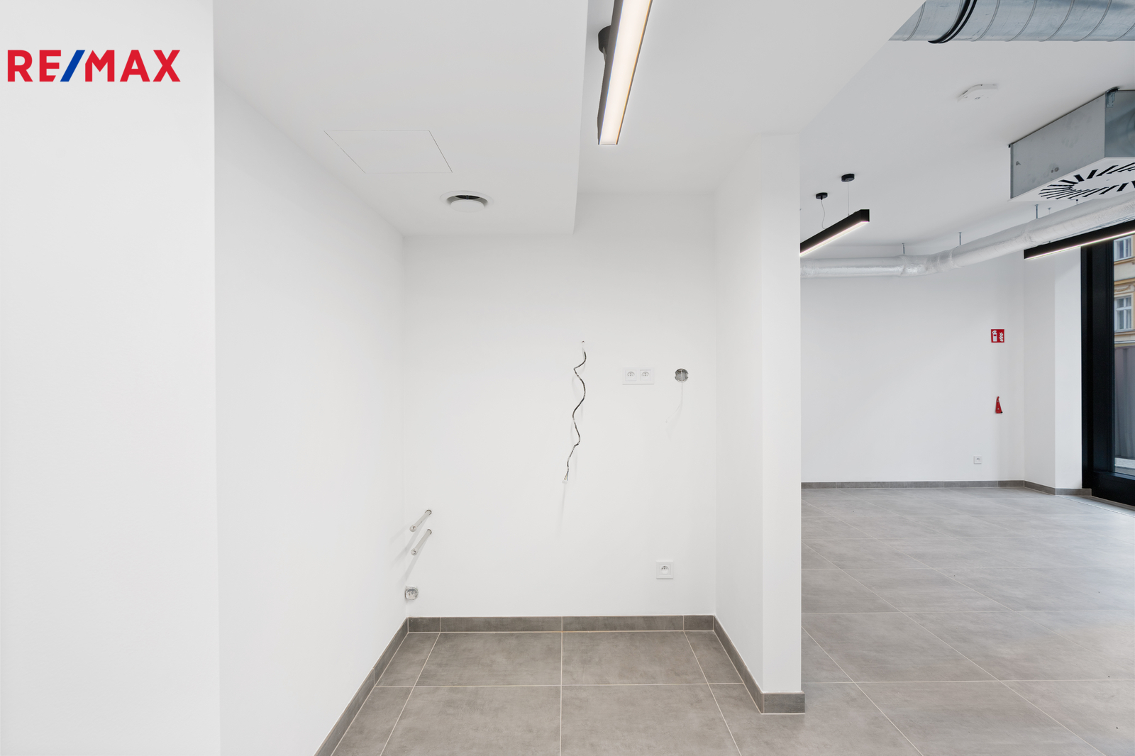 Oproti nynějšímu stavu, který můžete vidět na fotografiích, budou v prostoru umístěny dřevěné podhledy, které skryjí stropní instalace. Pro představu budoucího stavu si můžete v prezentaci prohlédnout vzorové vizualizace.