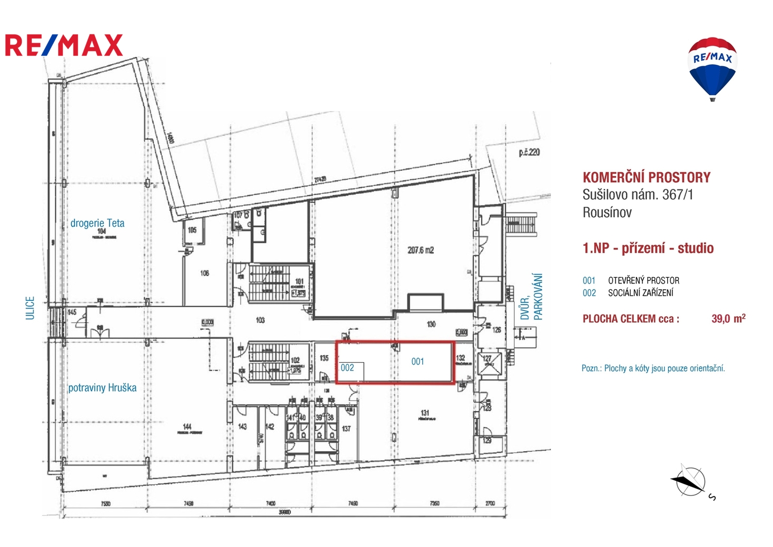 Nabízíme Vám pronájem nebytových prostor o celkové výměře cca 39 m2 v polyfunkční budově přímo u hlavní silnice. Jednotka se nachází v přízemí s každodenním provozem a pohybem osob.