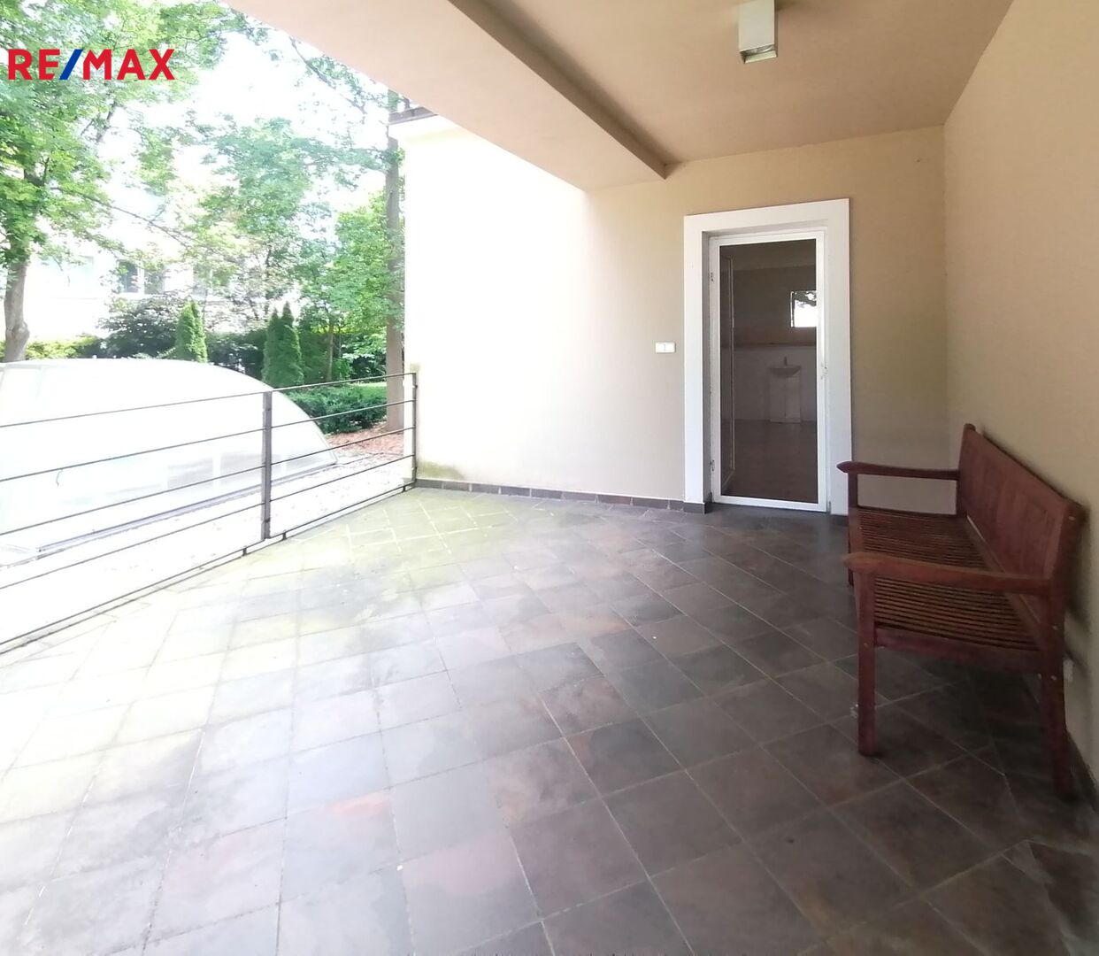 K prostoru patří velká zastřešená terasa s pěkným výhledem do zahrady, na kterou je vstup přímo z nebytového prostoru.