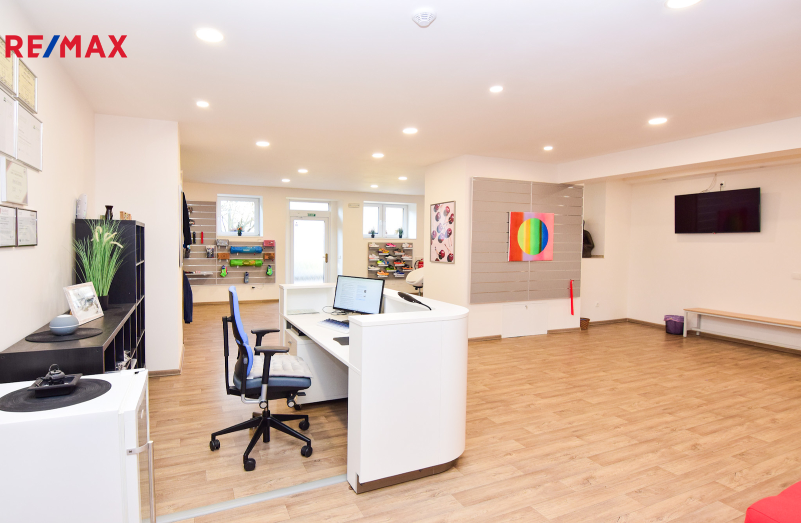 Nabízíme na pronájem moderně a kvalitně zrekonstruovaný obchodní prostor dosud využívaný jako fitness a posilovna a celkové podlahové ploše 380 m2. Součástí prostoru je velká obchodní plocha vhodná jako showroom s recepcí, výška stropu 2,7 m. Na ní jsou napojeny obslužné místností jako kuchyňka, sociální zázemí (wc muži/ženy, sprchy a šatny). Na podlahách je vinylová skládaná krytina, v sociálkách dlažba. V zadní části prostoru se nachází druhý velký prostor určený k cvičení s kobercem s výškou stropu 3 m. Vytápění zajišťuje tepelné čerpadlo, v podlahách jsou vedeny trubky pro podlahové vytápění. Parkování je možné před vraty u vjezdu do zahrady, k domu pak vede dlážděný chodníček. Celý protor je nový, čistý a velmi světlý, jeho optimální využití je jako showroom, obchodní prostor, salón, nebo jako sídlo firmy pro kancelářskou práci částečně s využitím openspace. V poplatcích bude zahrnuta spotřeba vody a elektriky. Pro více informací volejte.